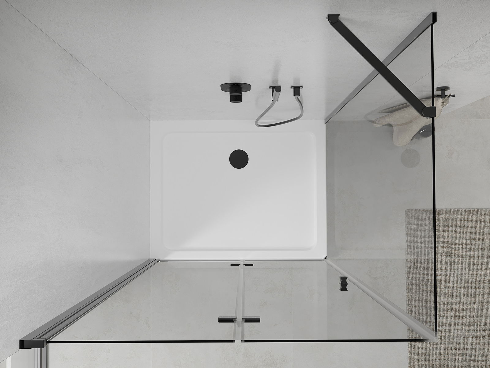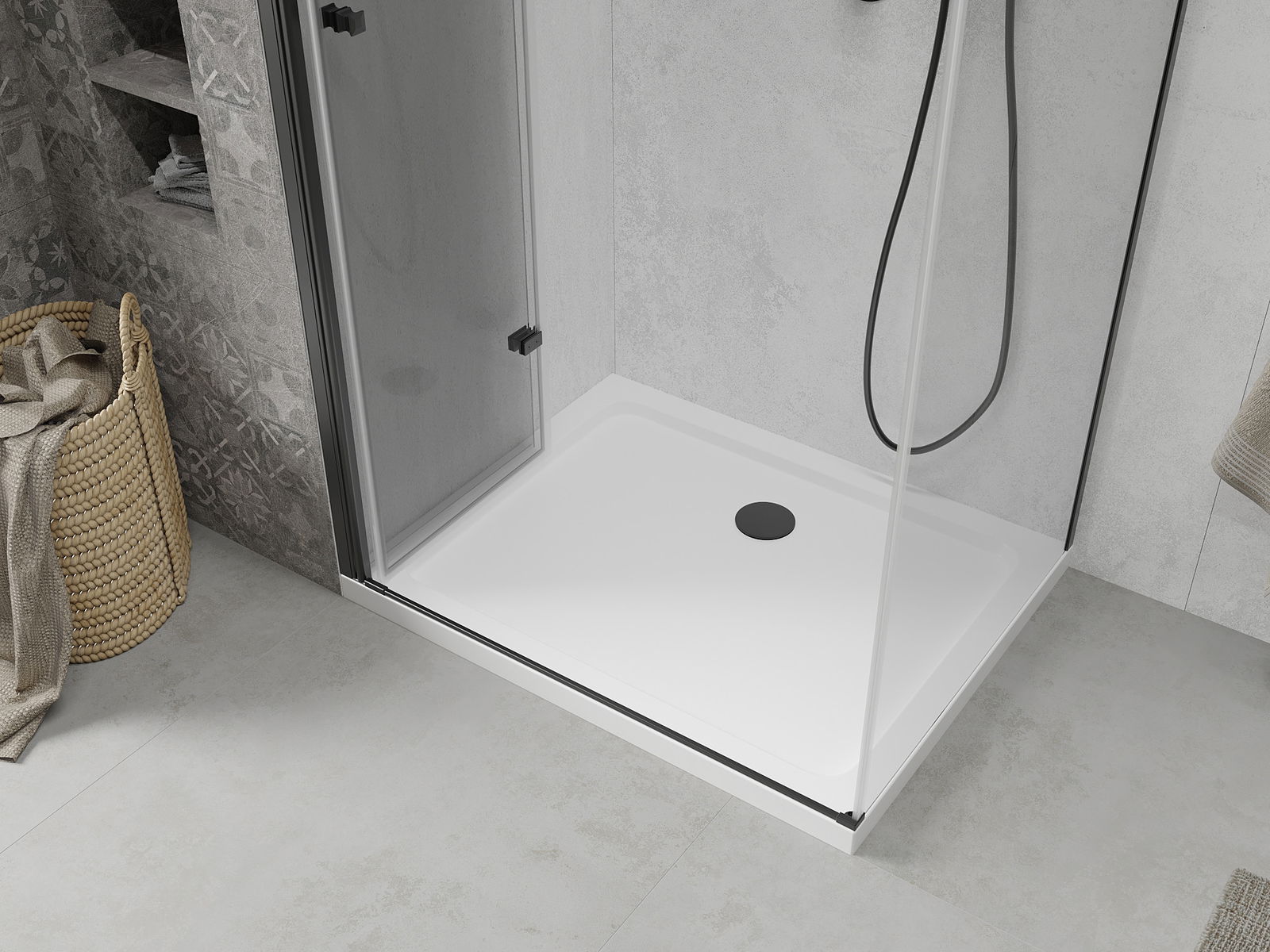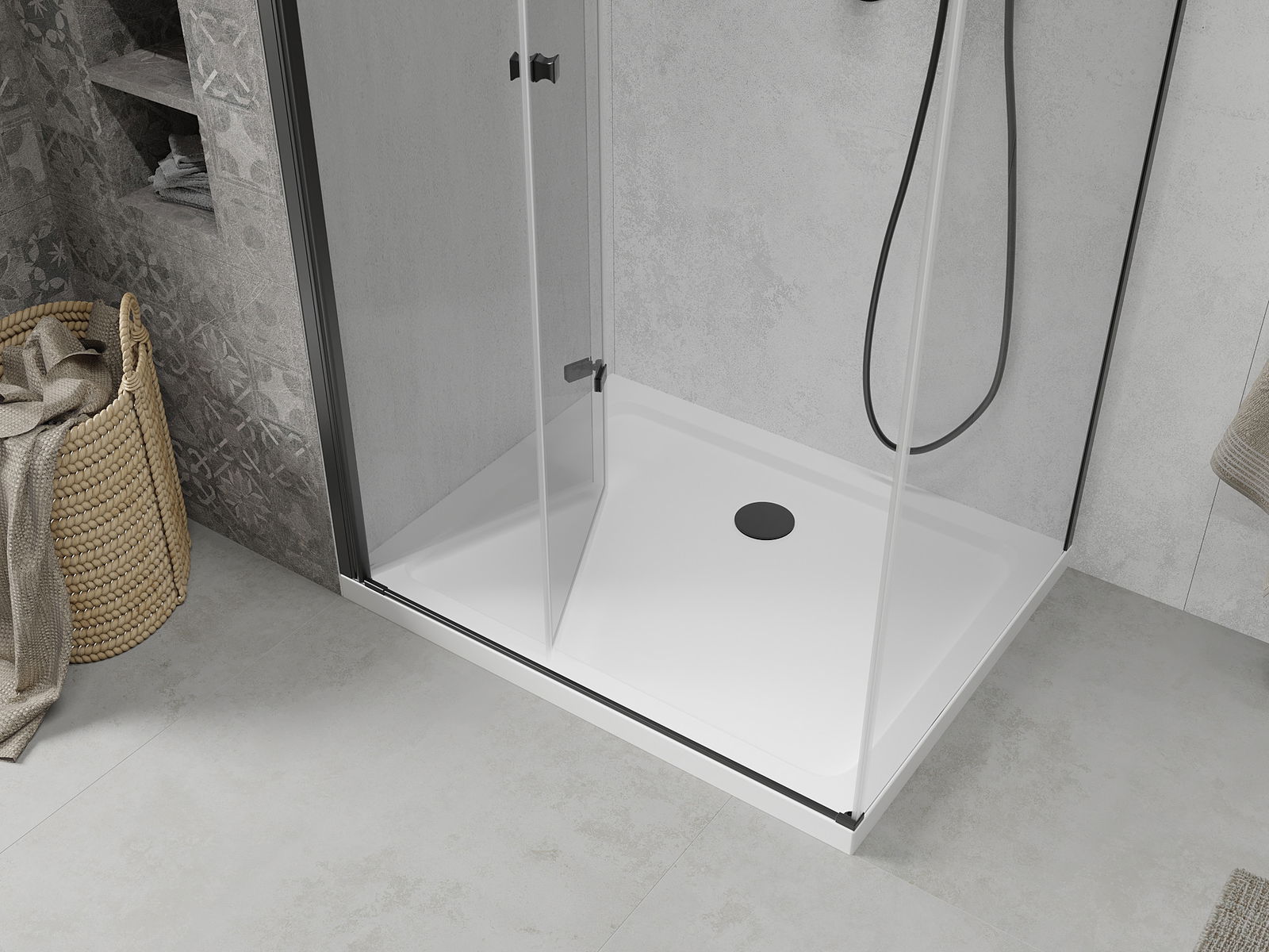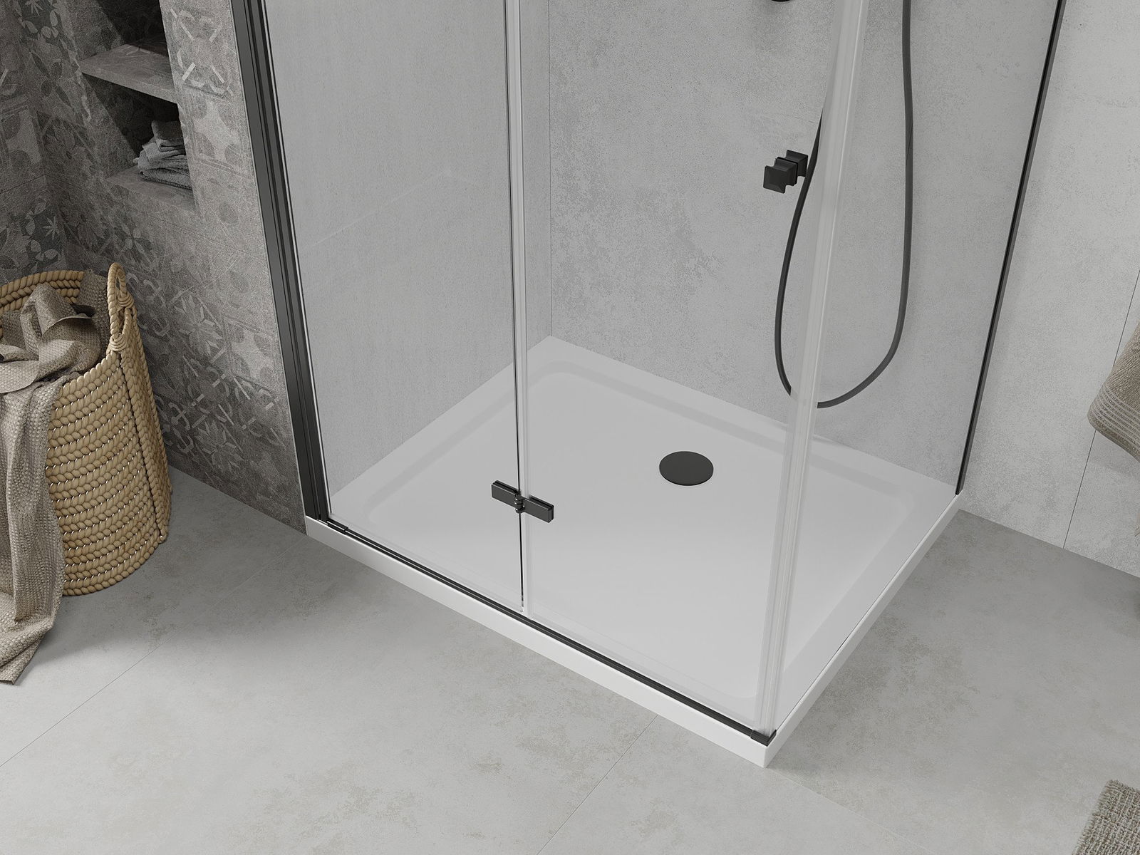 Mexen Lima сгъваема душ кабина 90 x 70 см, прозрачна, черна + корито Flat, бяло