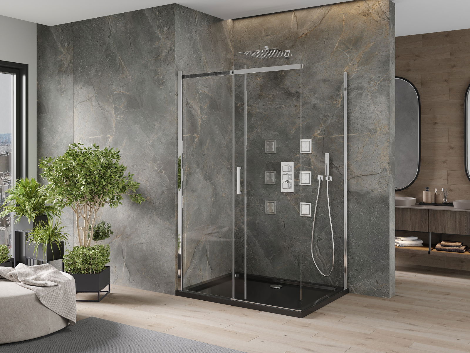 Плъзгащите се врати се движат около специални водачи и не изискват допълнително място, за да ги отворят, така че те ще работят в по -малки бани. Благодарение на двойните ролки с метално тяло, тяхното движение е течно.