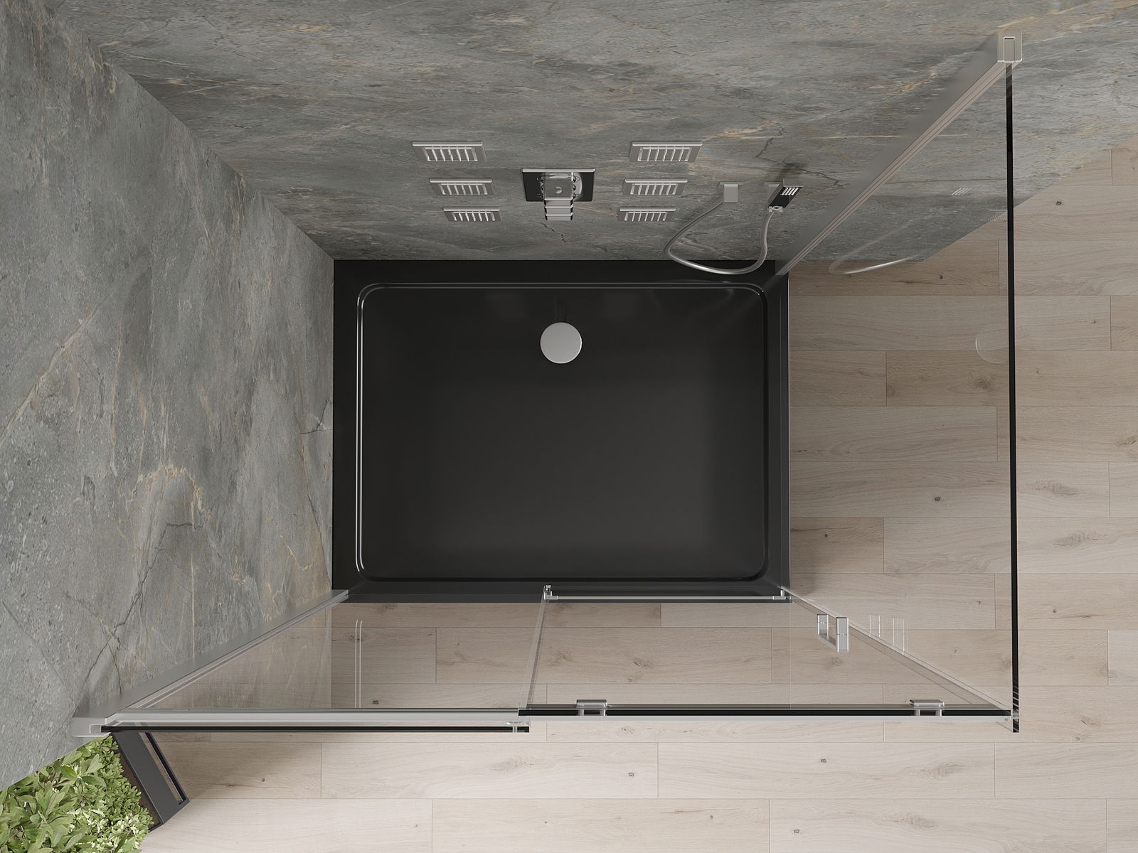 Mexen Omega плъзгаща се душ кабина 120 x 80 см, прозрачна, хром + плосък душ коритце, черно - 825-120-080-01-00-4070