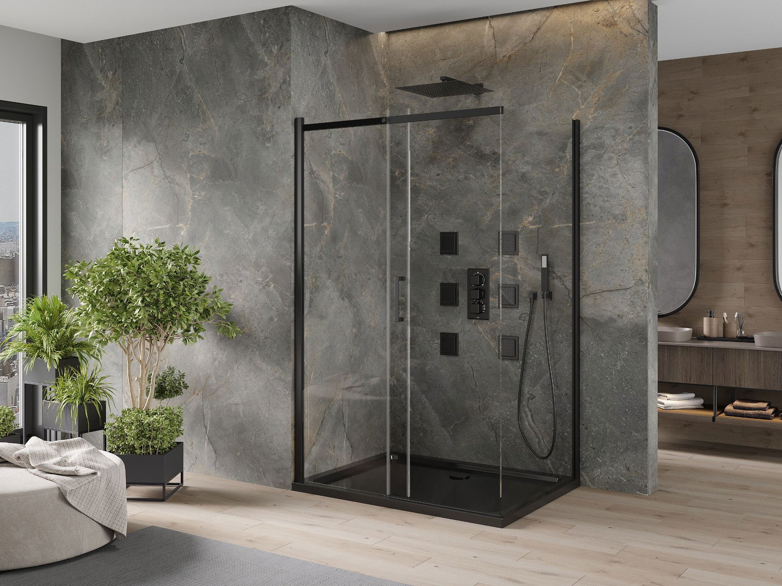 Mexen Omega плъзгаща се душ кабина 100 x 90 см, прозрачна, черна + поддушово