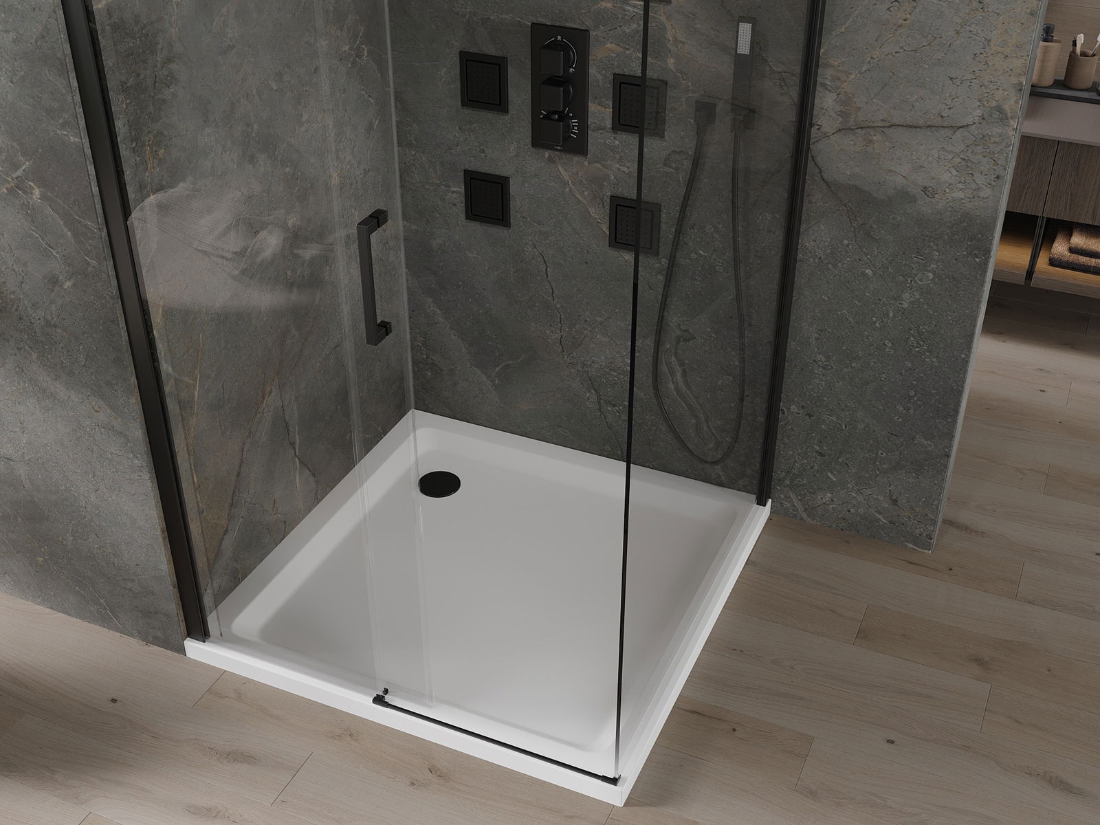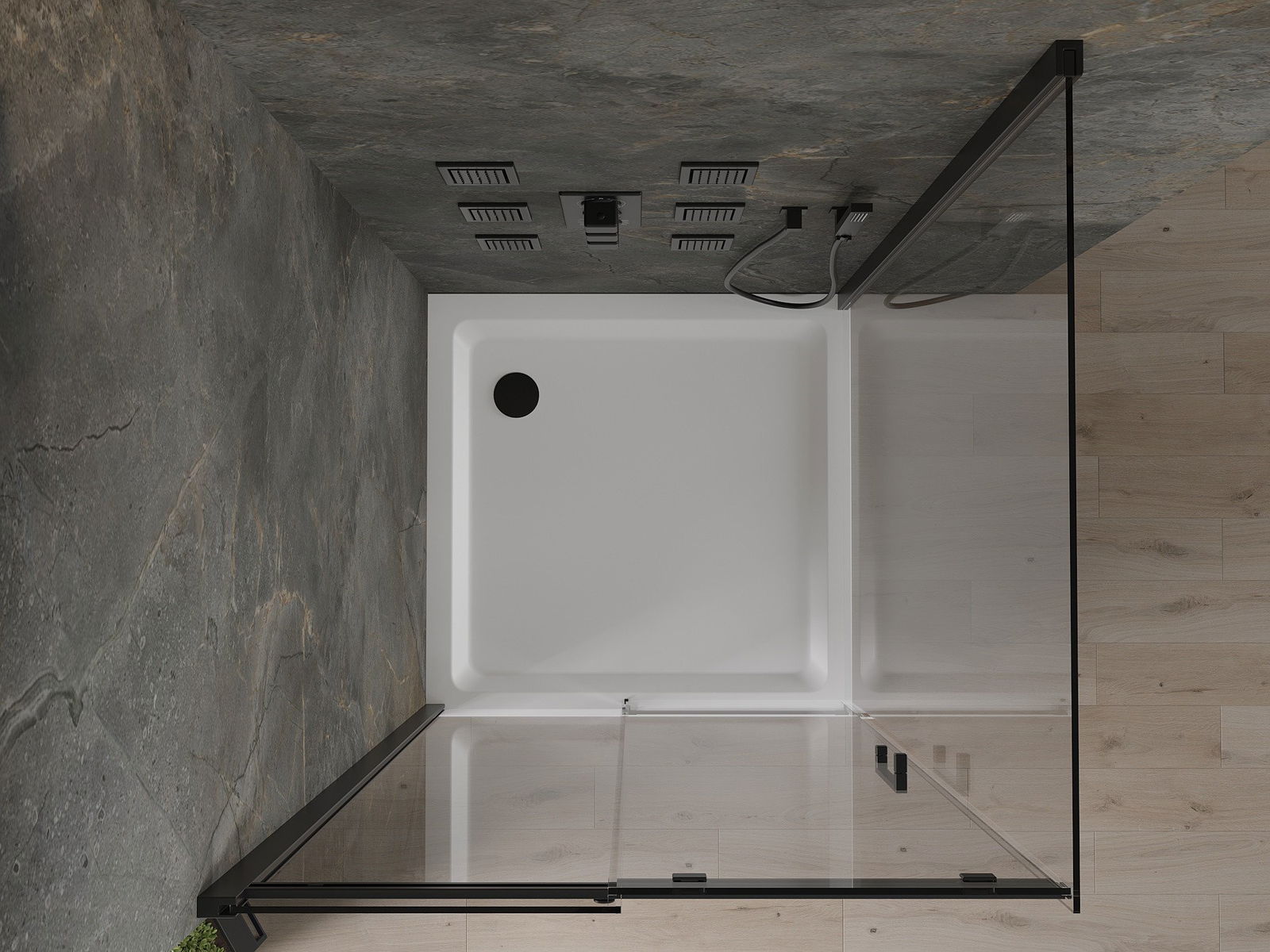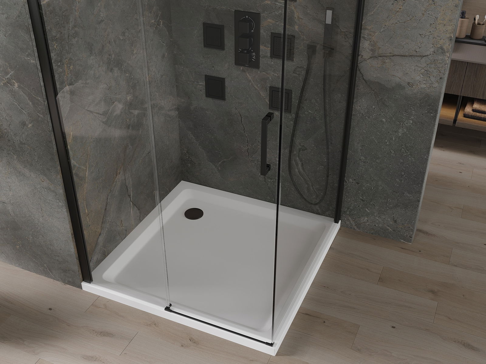 Mexen Rio квадратна душ кабина 90 x 90 см, прозрачна, черна - 860-090-090-70-00