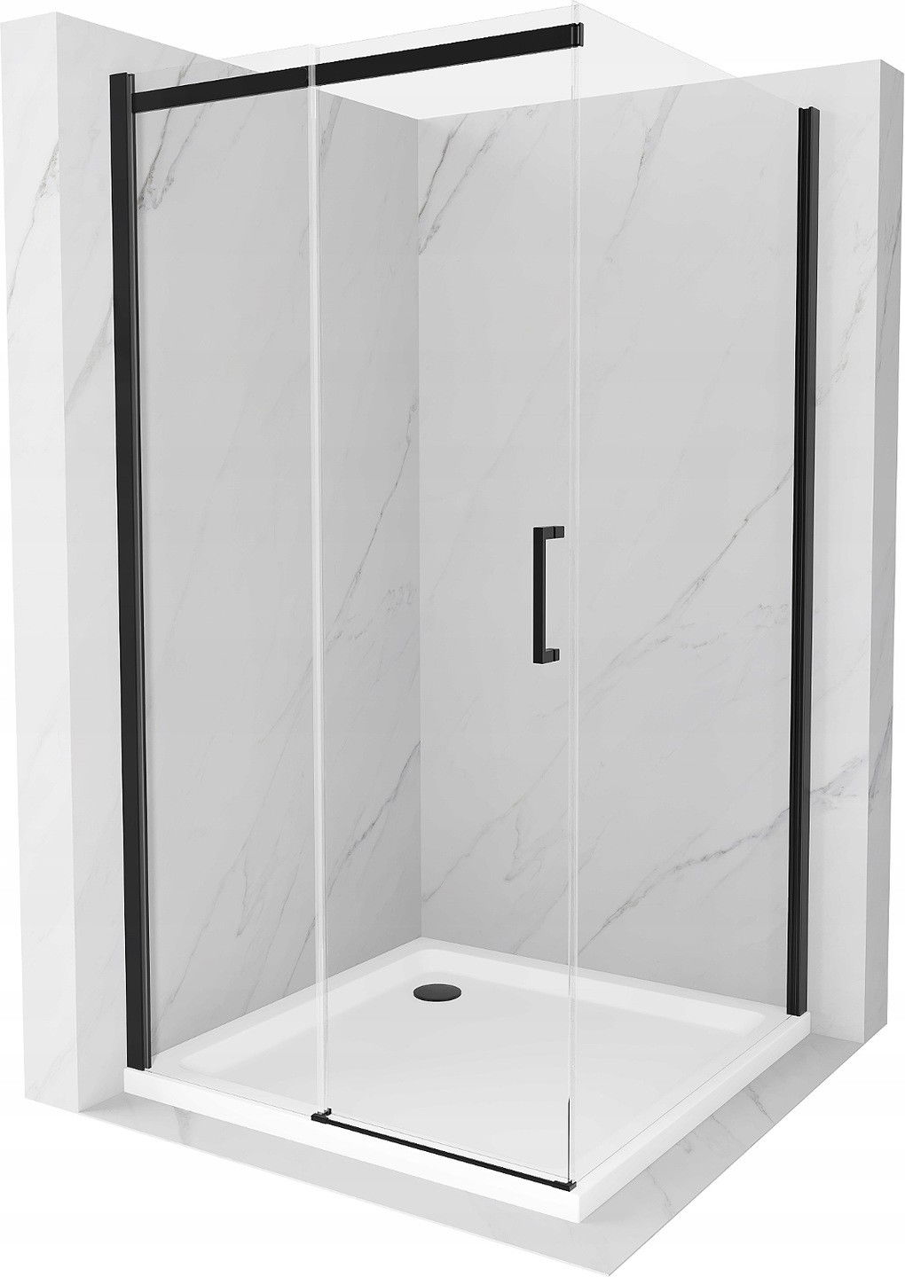 Mexen Omega плъзгаща се душ кабина 100 x 100 см, прозрачна, черна + тава Flat, бяла - 825-100-100-70-00-4010B