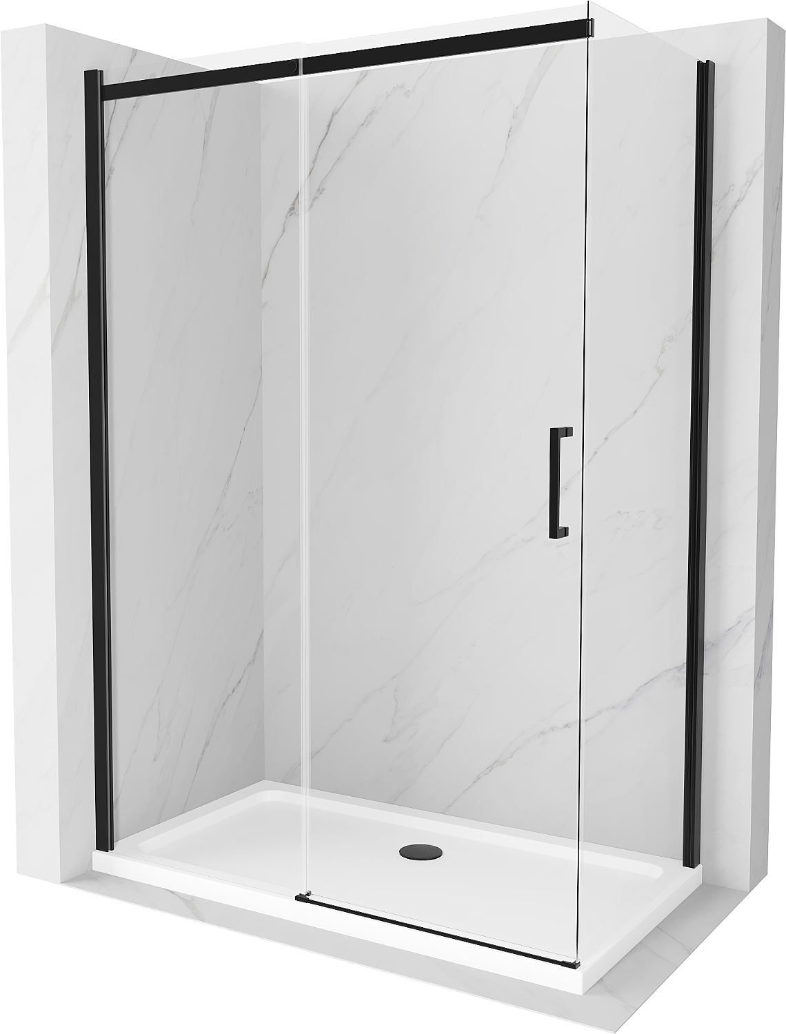 Mexen Omega плъзгаща се душ кабина 140 x 80 см, прозрачна, черна + корито Flat, бяло - 825-140-080-70-00-4010B