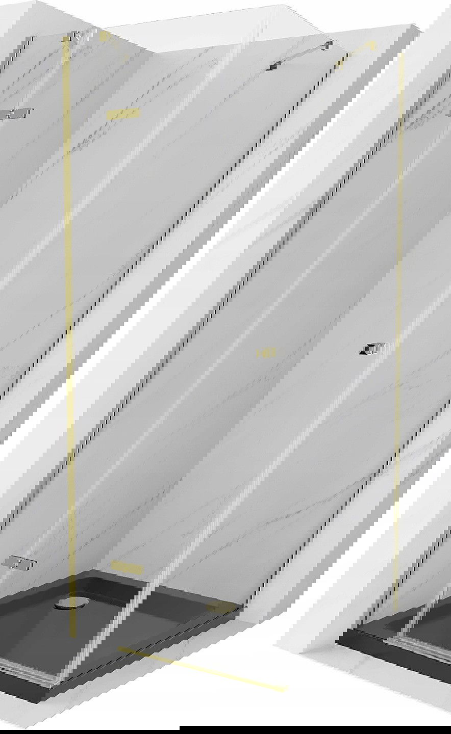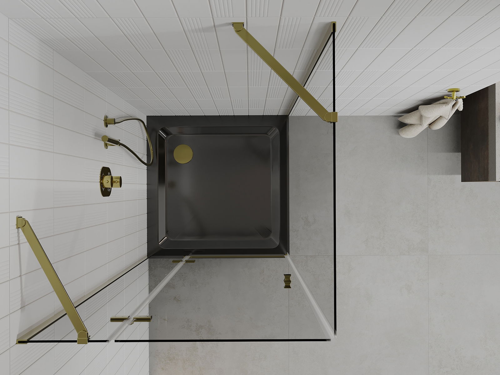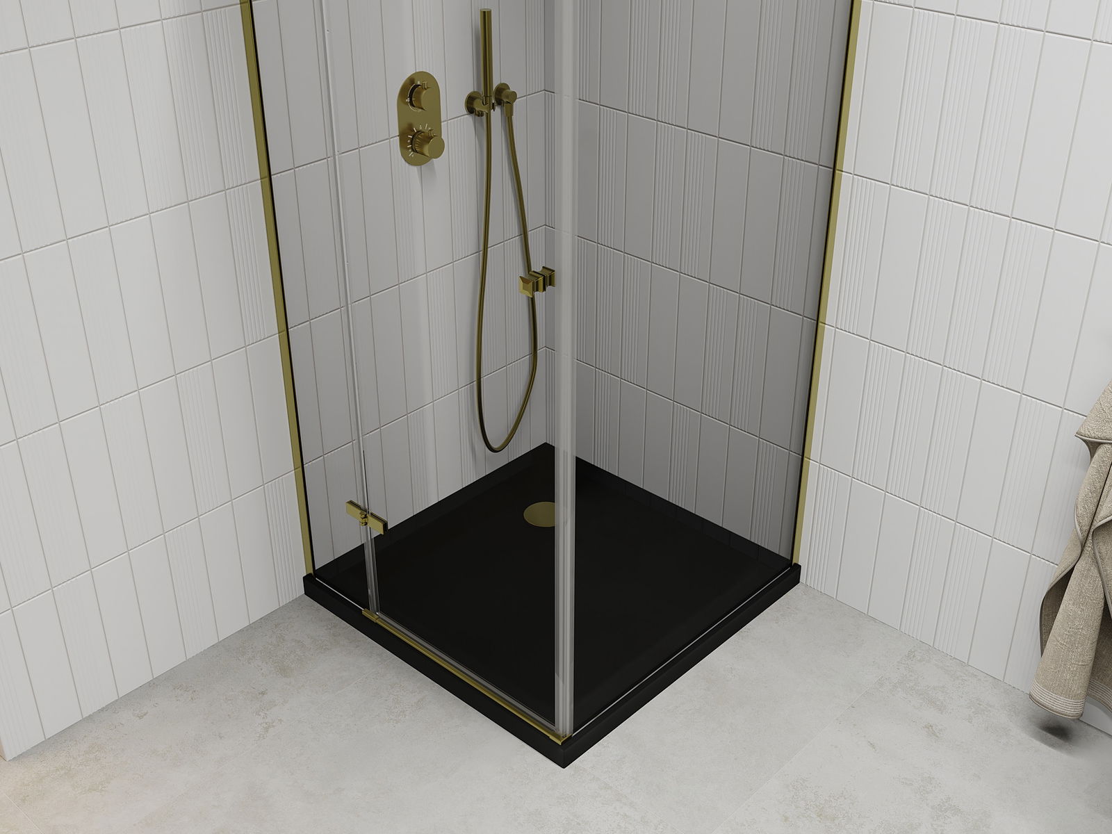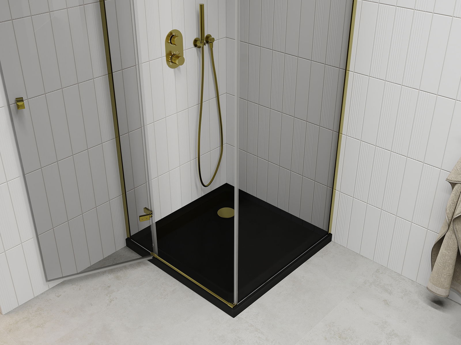 Mexen Roma душ кабина с отваряеми врати 80 x 80 см, прозрачна, златна + поддушово корито Flat, черно - 854-080-080-50-00-4070G