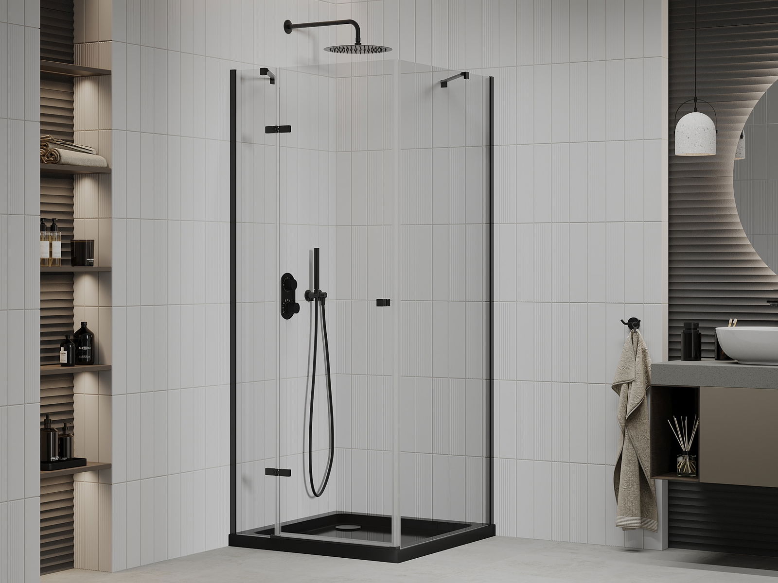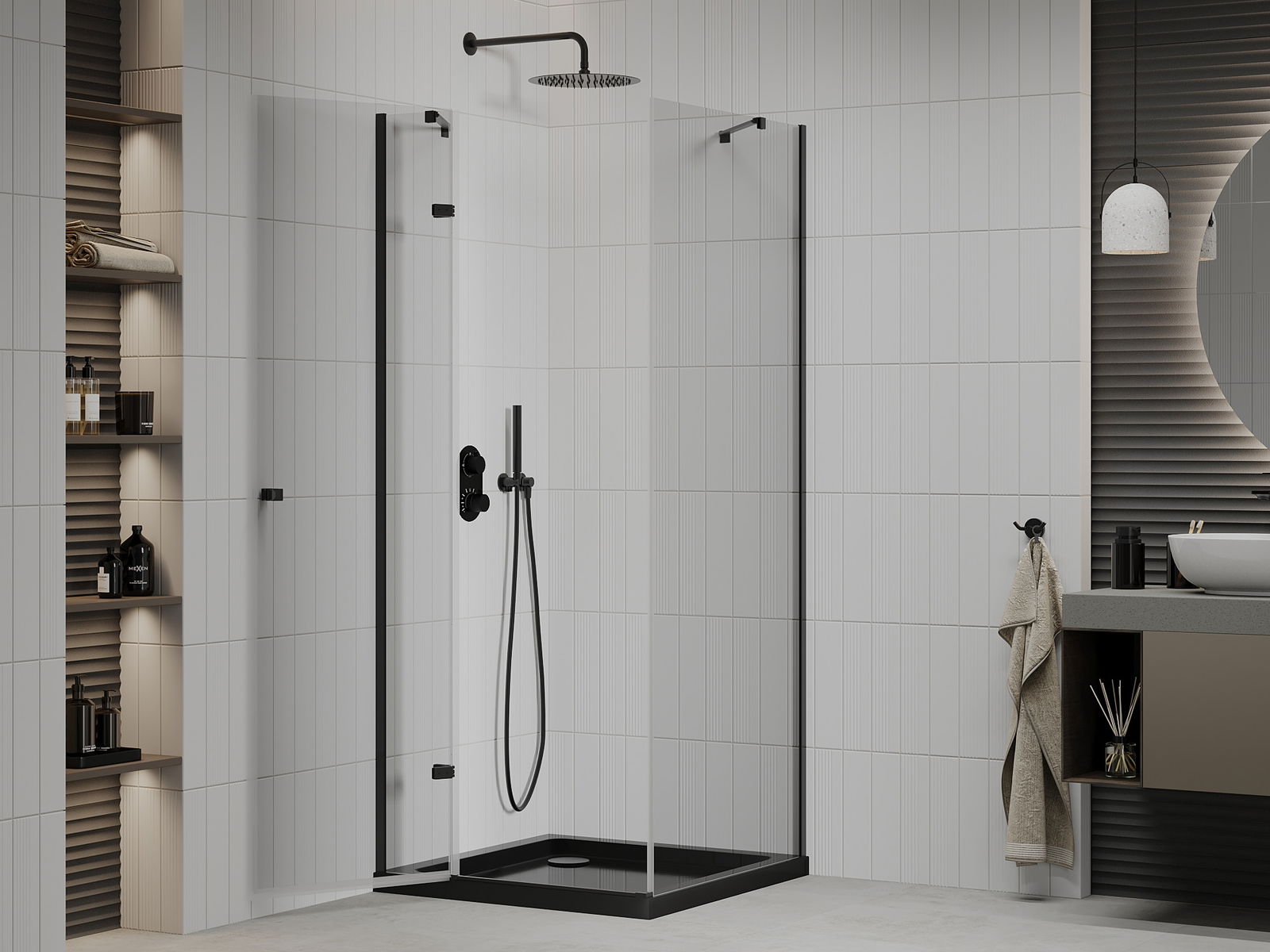 Mexen Roma кабина за душ с отварящи се врати 90 x 90 см, прозрачна, черна + тава Flat, черна - 854-090-090-70-00-4070B