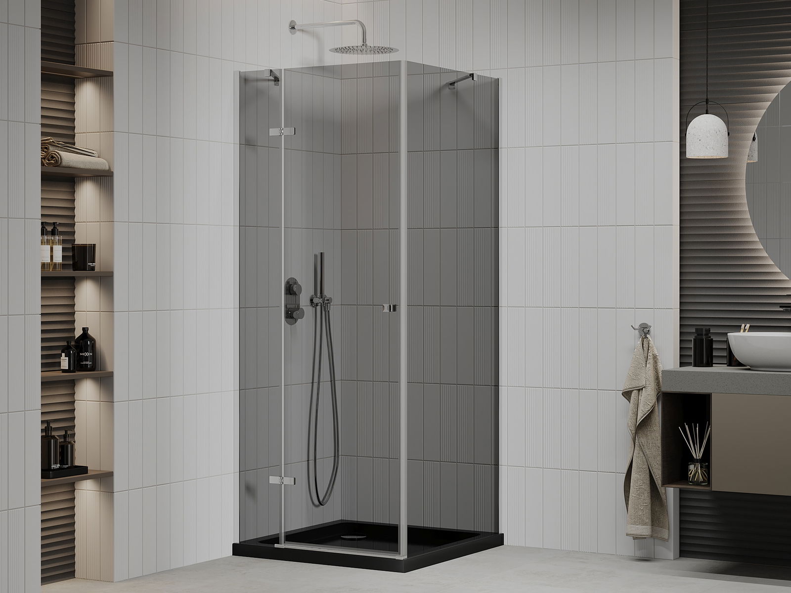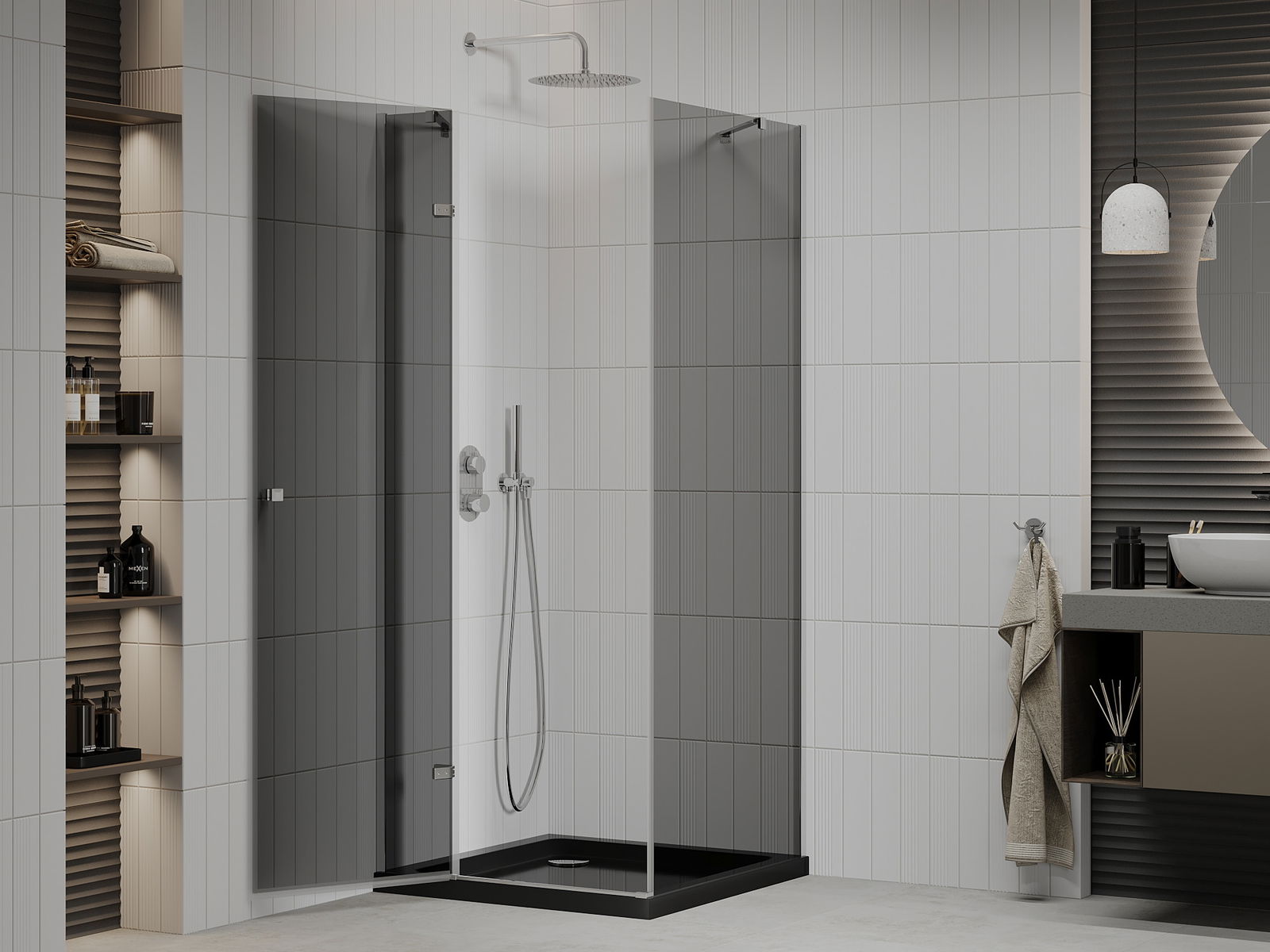 Благодарение на използването на универсалната система за монтаж, душовите врати могат да бъдат монтирани отдясно или отляво, в зависимост от нуждите. Благодарение на това можете лесно да проектирате душ, който е напаснат към пространството в банята.