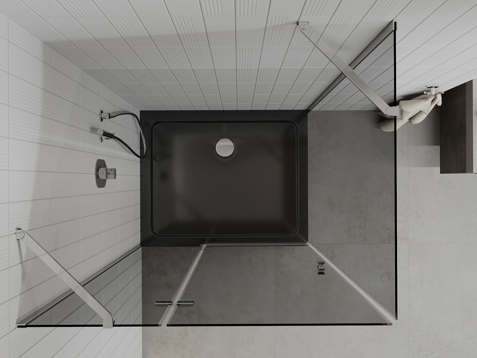 Мексен Рома душ кабина с отваряща се врата 90 x 100 см, графит, хром + корито Flat, черно - 854-090-100-01-40-4070
