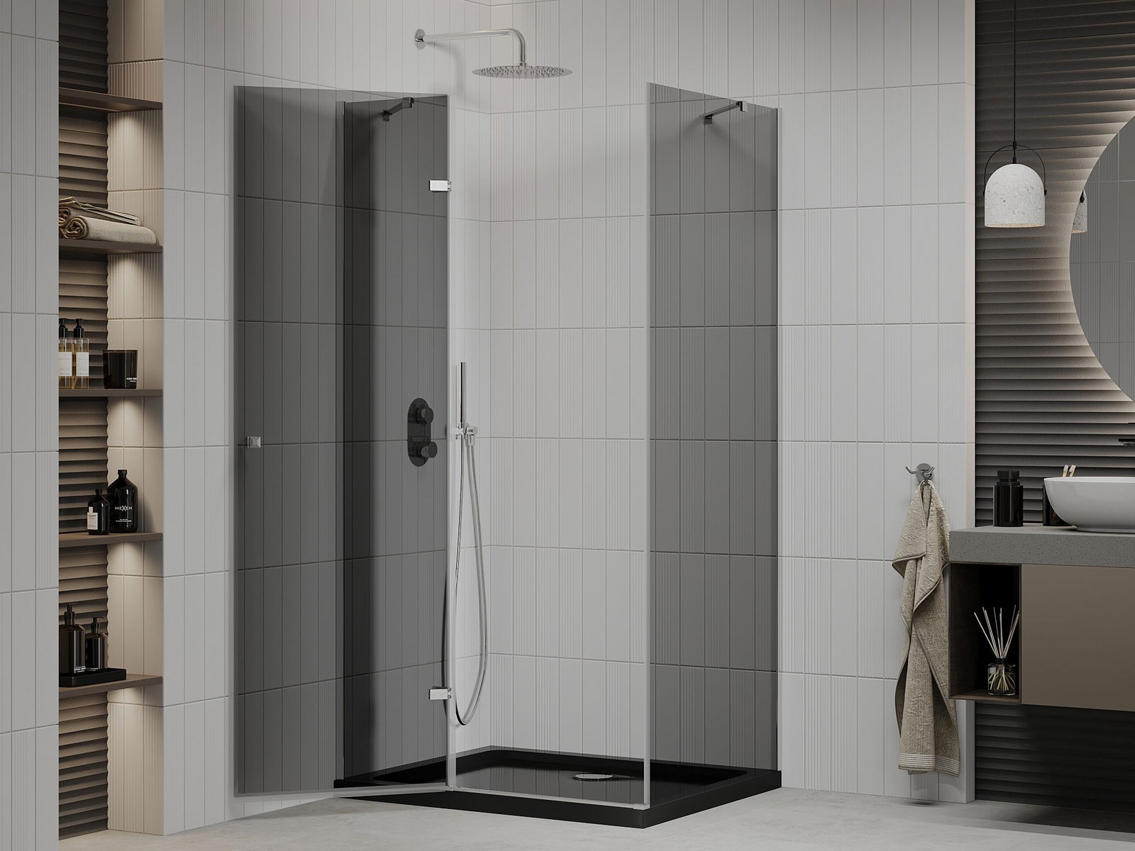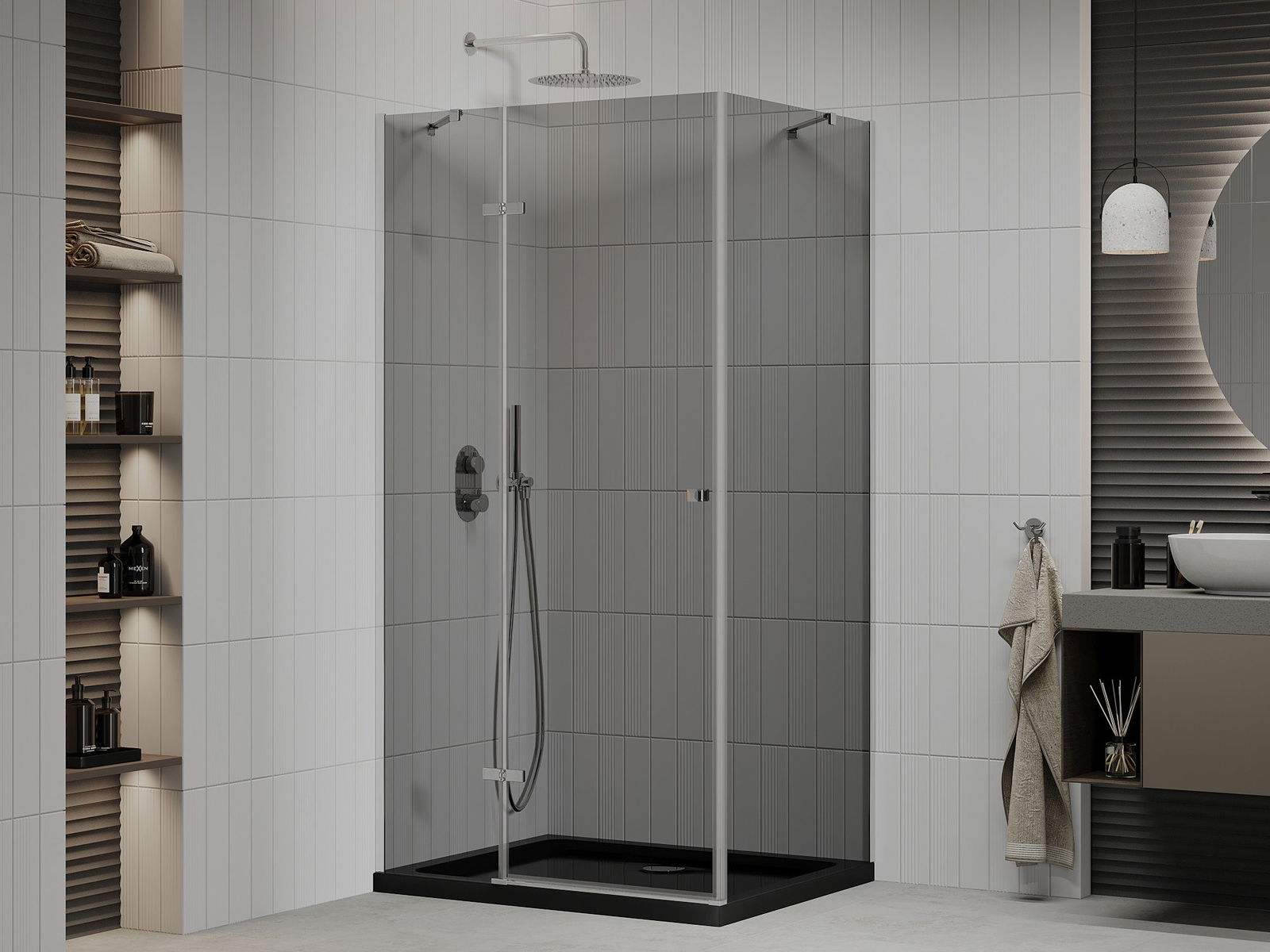 Mexen Roma отваряща се душ кабина 90 х 100 см, графит, хром + тава Flat, черна