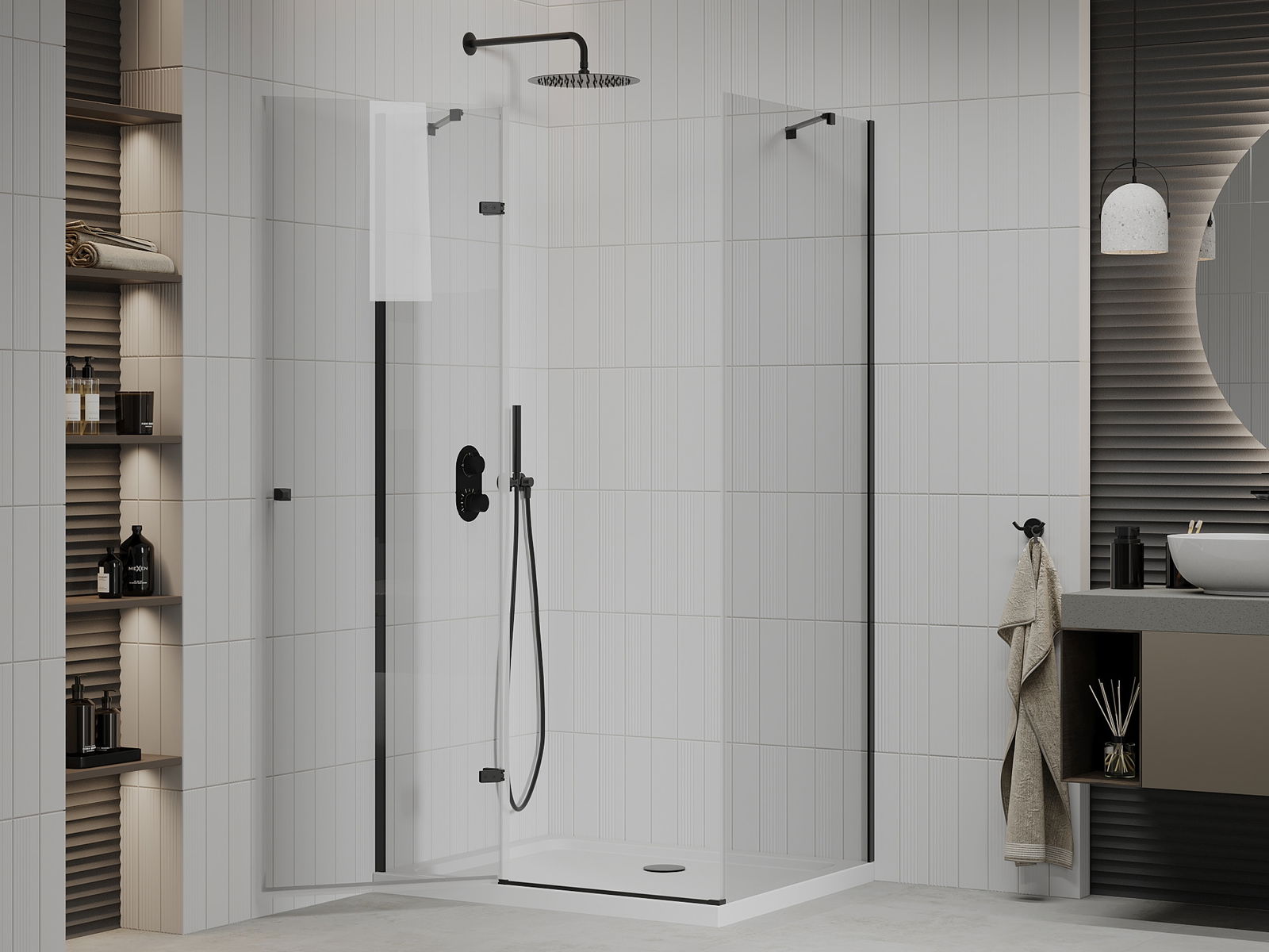 Mexen Rio квадратна душ кабина 90 x 90 см, прозрачна, черна - 860-090-090-70-00