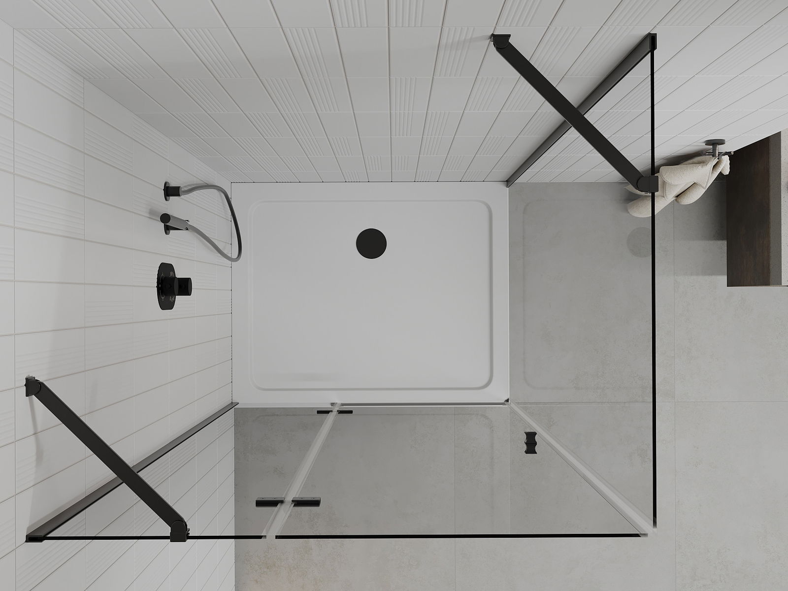 Удобната и практична дръжка е изработена от здрав и устойчив метал. Модерната форма в съчетание с покритието, съответстващо на цвета на профилите, придава на цялото модерен и стилен вид, подчертавайки естетиката на всяка баня.