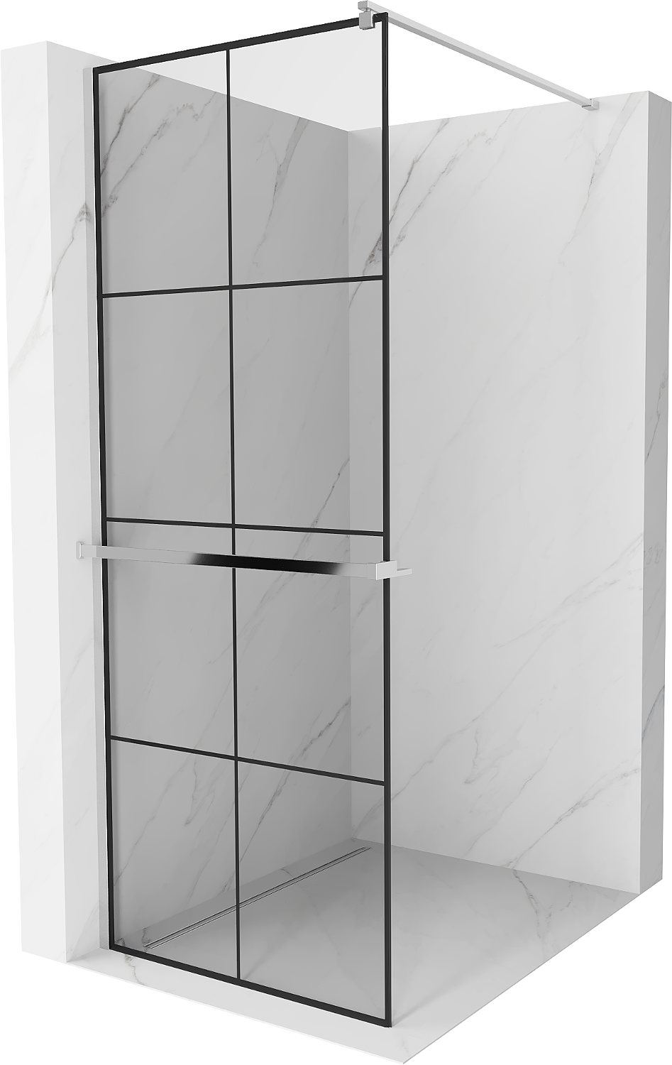 Mexen Kioto+ душ преграда с рафт Walk-in 90 x 200 см, черна решетка, хром - 800-090-121-01-77