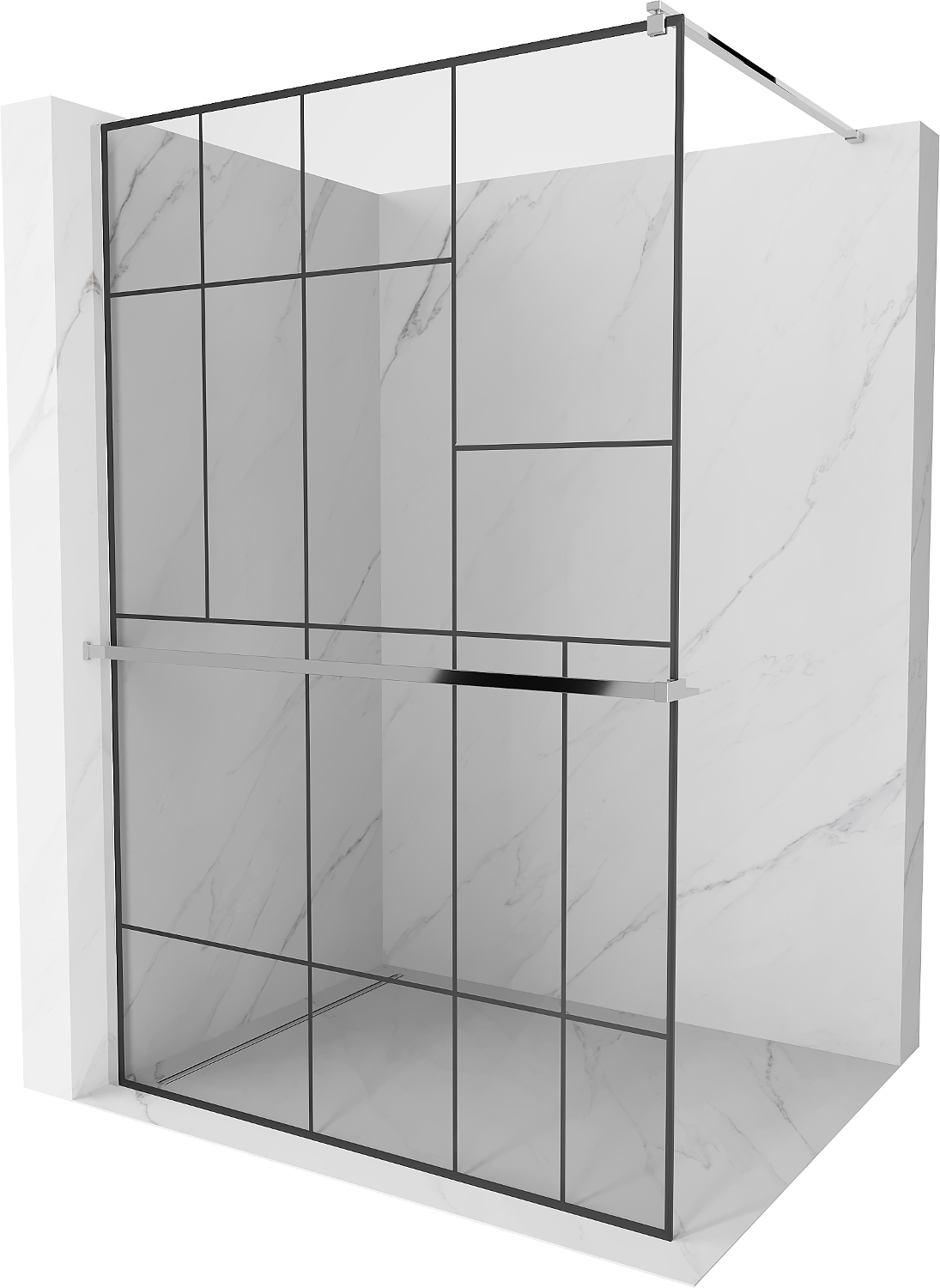 Mexen Kioto+ душ кабина със стена и рафт Walk-in 140 x 200 см, черен мотив, хром - 800-140-121-01-78