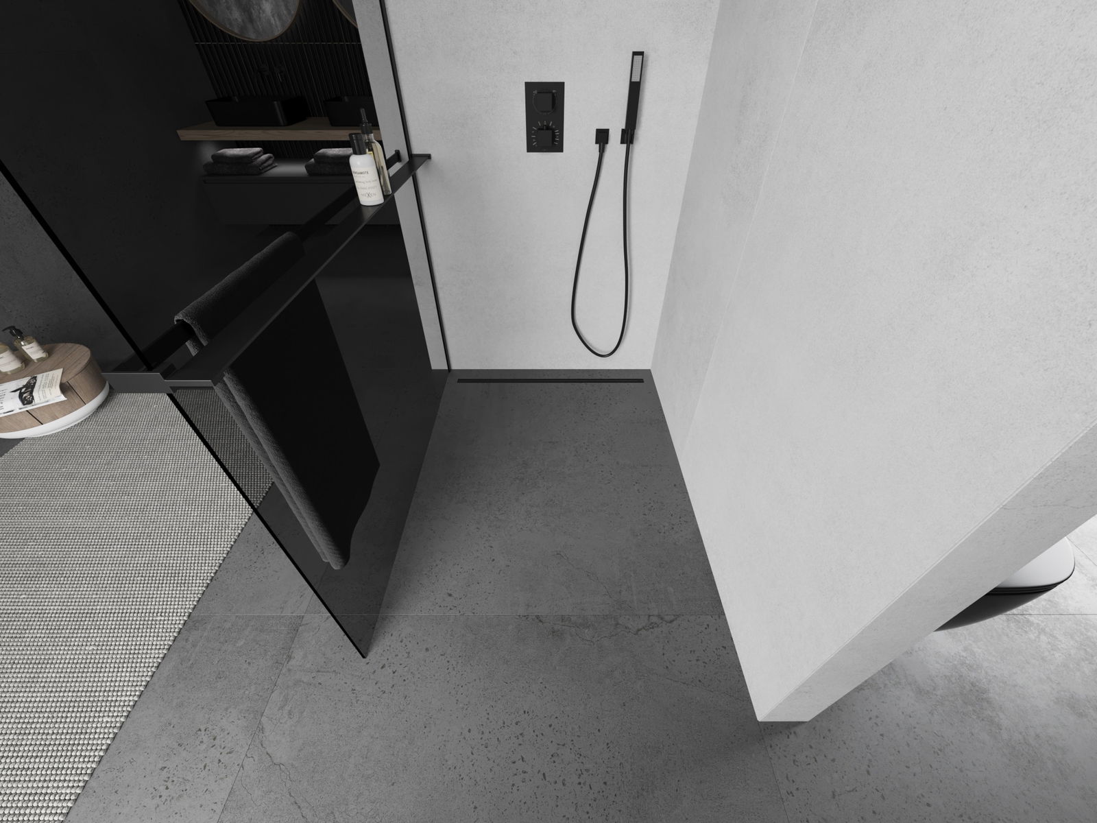 Mexen Kioto+ душ преграда с поличка Walk-in 110 x 200 cm, графит, черна - 800-110-121-70-40