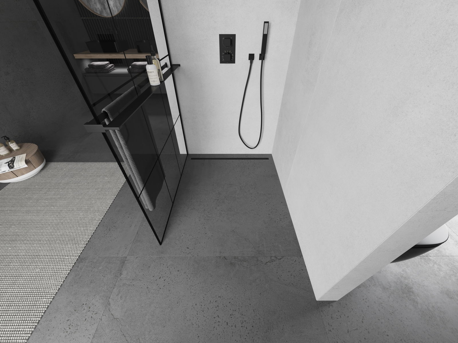 Mexen Kioto+ панел за душ с рафт Walk-in 100 x 200 см, черна решетка, черен - 800-100-121-70-77