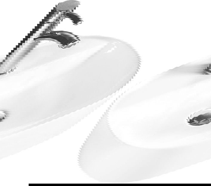 Мивката има дупка, в която можем да монтираме батерията. Това спестява ценно пространство в банята и подчертава естетиката му. Това решение също ви позволява лесно да се държите чисти около мивката.