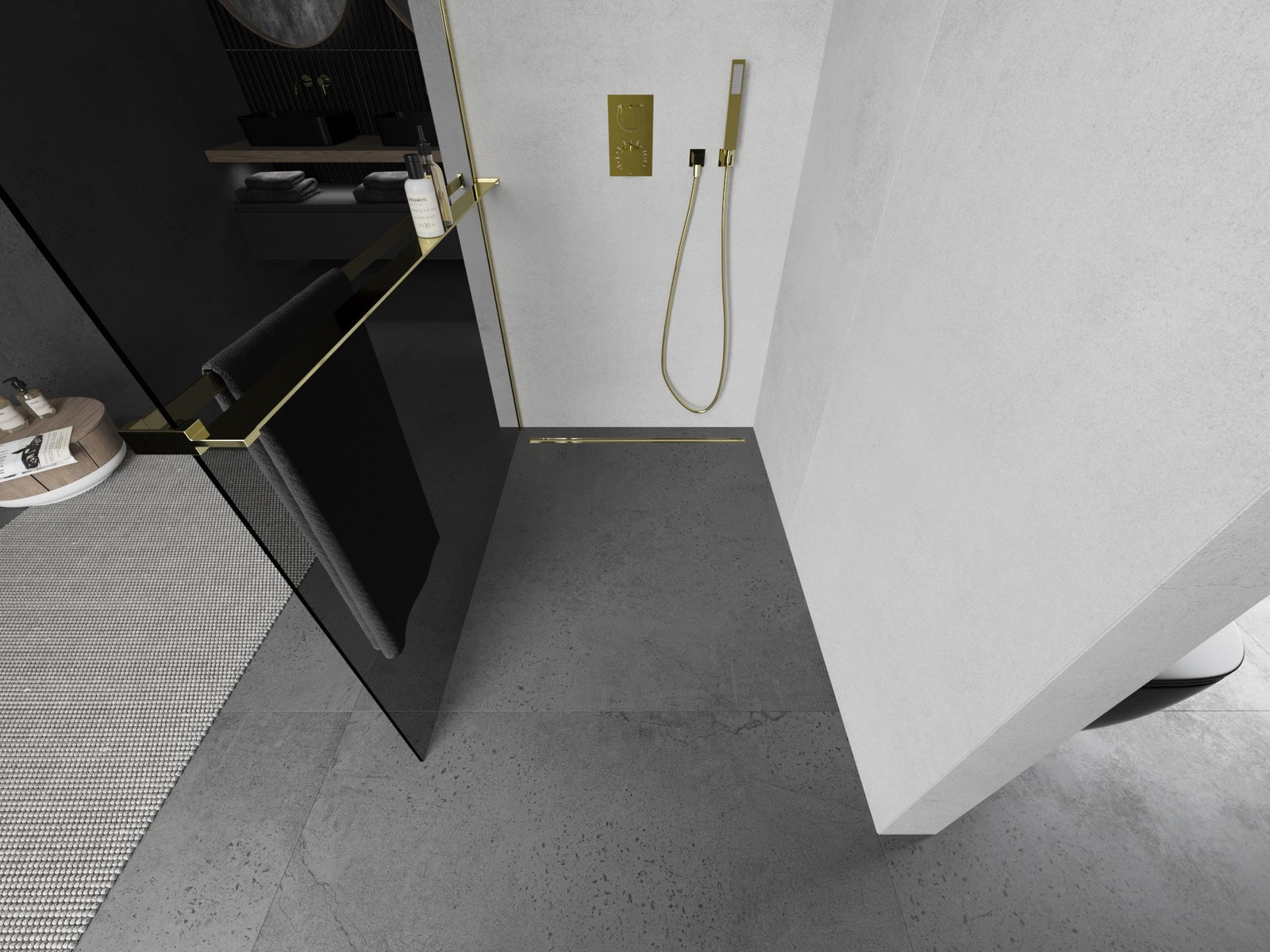Mexen Kioto+ душ преграда със стъклена полица Walk-in 100 x 200 см, графит, злато - 800-100-121-50-40