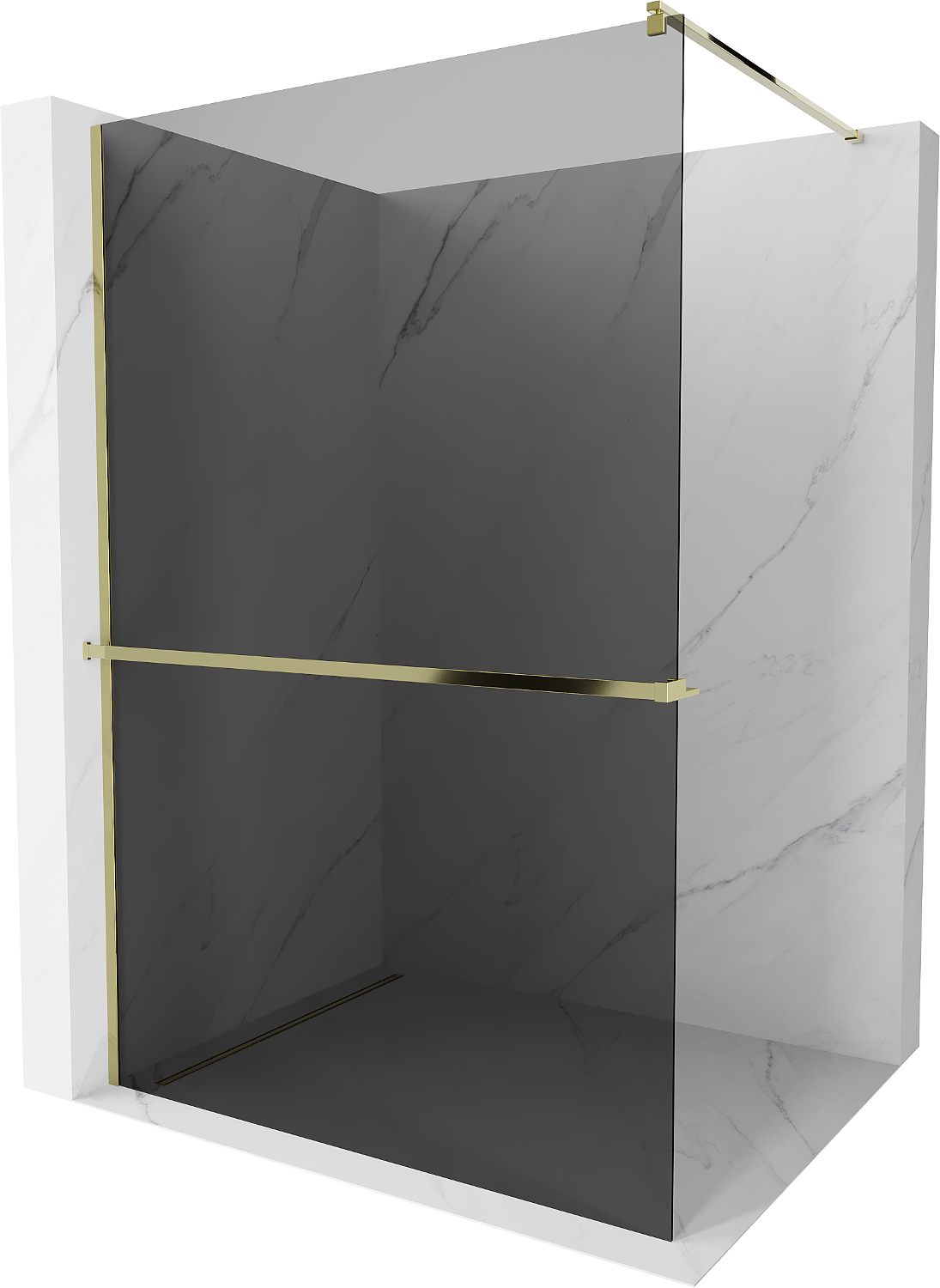 Mexen Kioto+ душ-параван със стойка Walk-in 120 x 200 см, графит, злато - 800-120-121-50-40