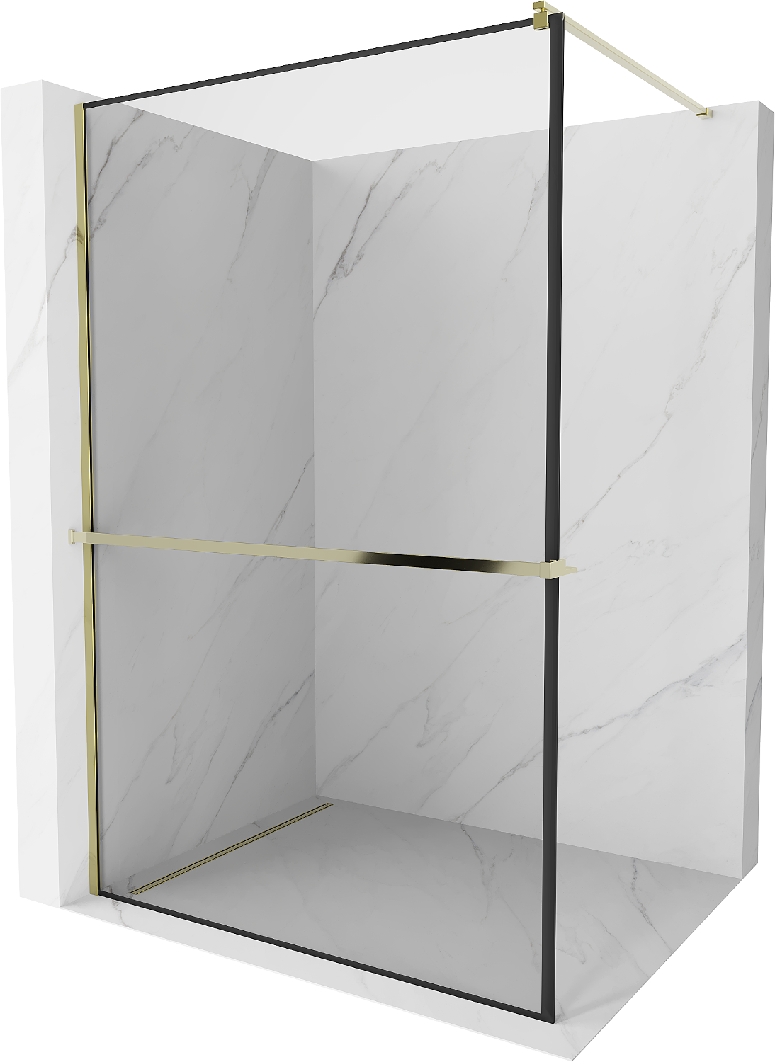 Mexen Kioto+ стенен панел за душ с рафт Walk-in 70 x 200 cm, черна рамка, златен - 800-070-121-50-70