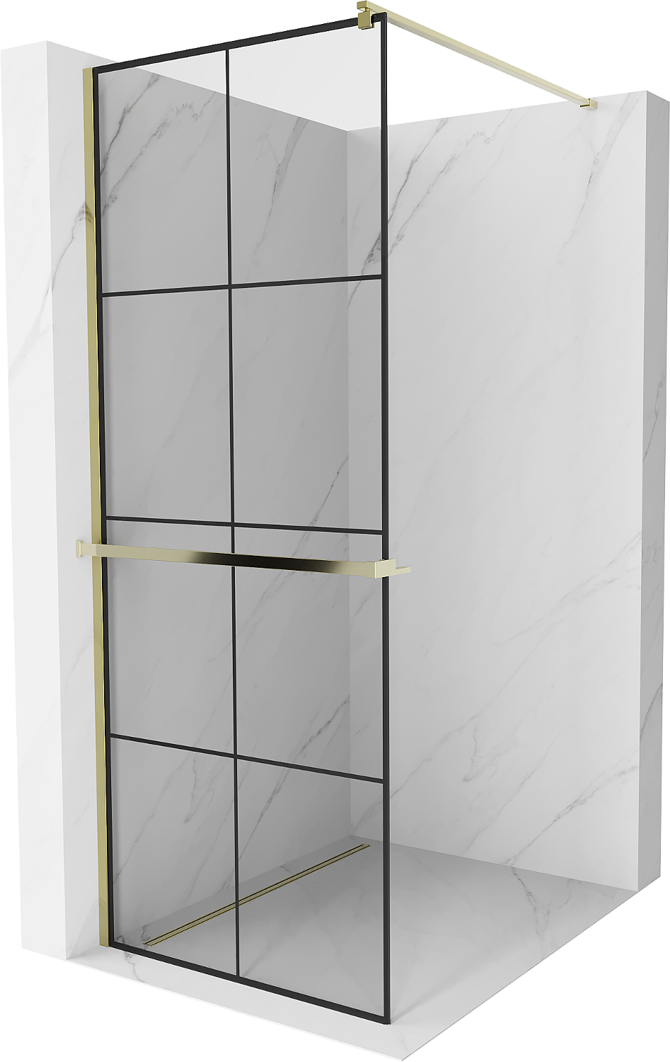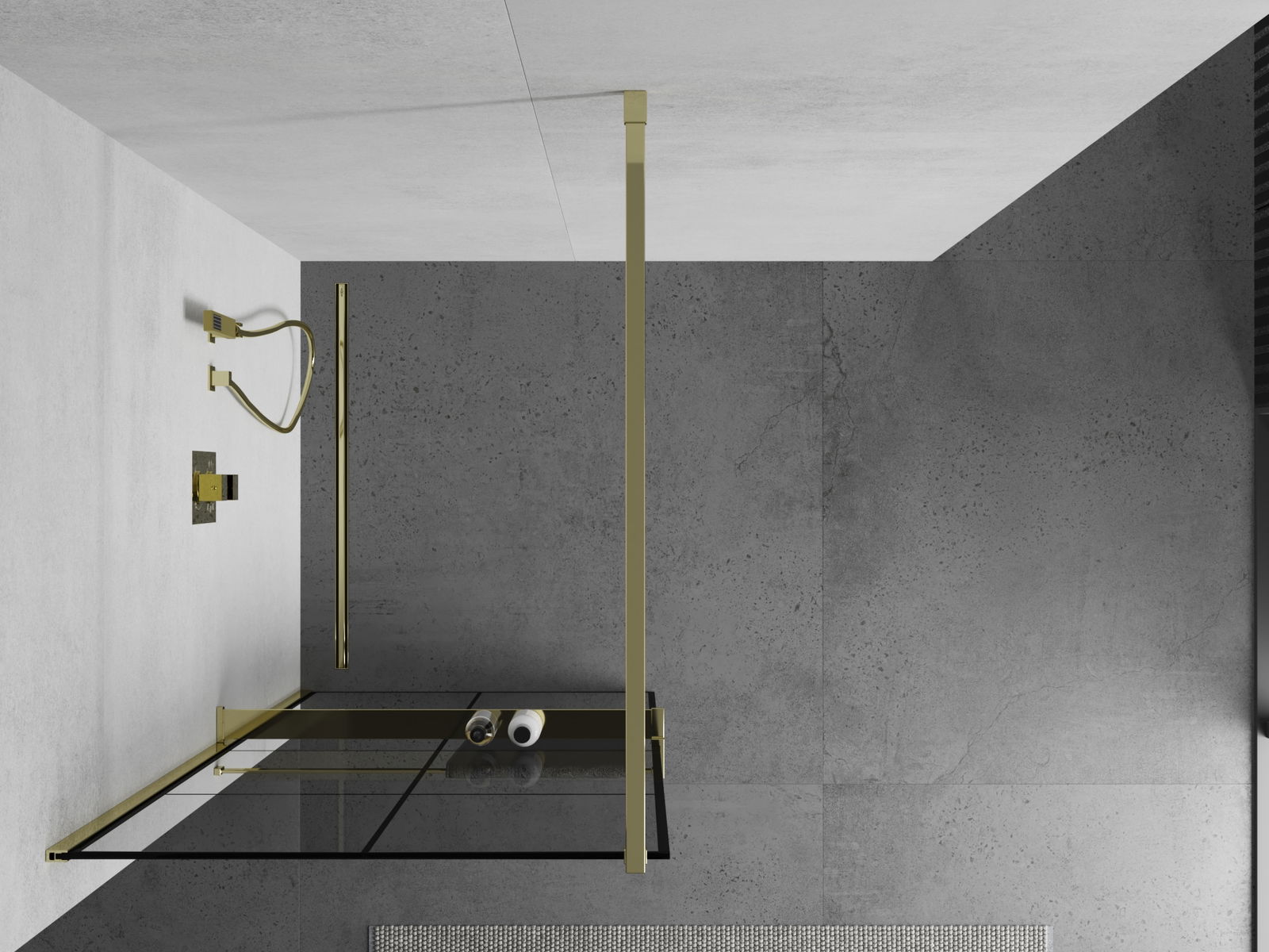 Mexen Kioto+ душ параван с рафт Walk-in 70 x 200 см, черна решетка, златна - 800-070-121-50-77