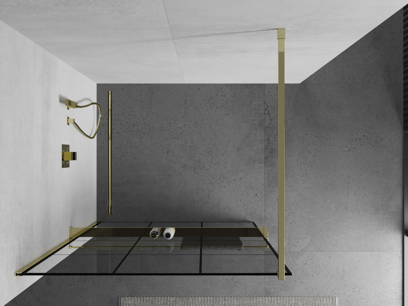 Mexen Kioto+ душ параван с рафт Walk-in 110 x 200 см, черна мрежа, златна - 800-110-121-50-77