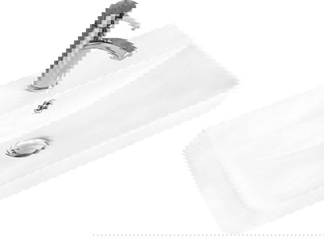 Мивката има дупка, в която можем да монтираме батерията. Това спестява ценно пространство в банята и подчертава естетиката му. Това решение също ви позволява лесно да се държите чисти около мивката.