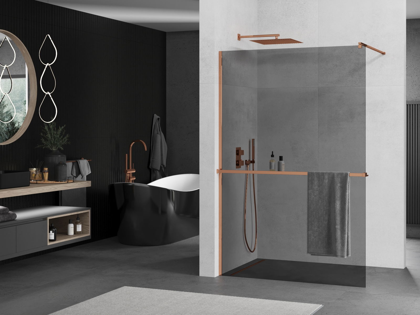 Mexen Kioto+ душ кабина с рафт Walk-in 90 x 200 см, графит, розово злато - 800-090-121-60-40