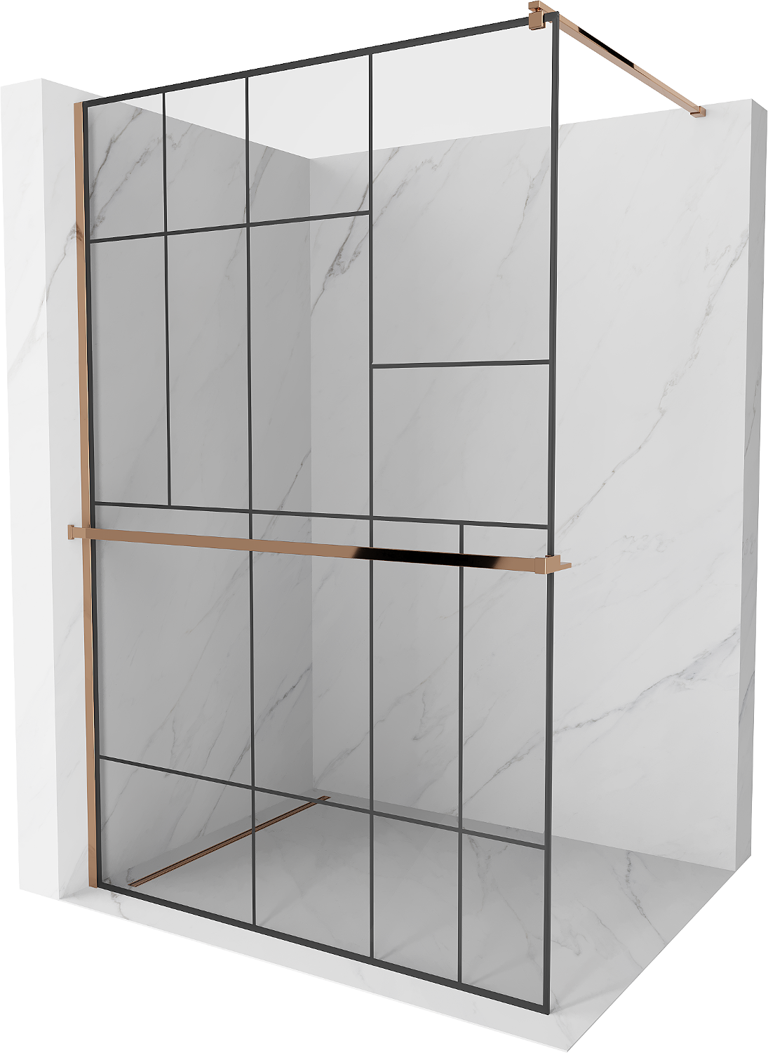 Mexen Kioto+ душ кабина със стена с рафт Walk-in 130 x 200 см, черен шарка, розово злато - 800-130-121-60-78