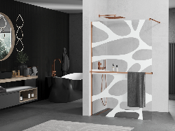 Mexen Kioto+ душ панел със стойка Walk-in 120 x 200 см, бяла вълна, розово злато - 800-120-121-60-97