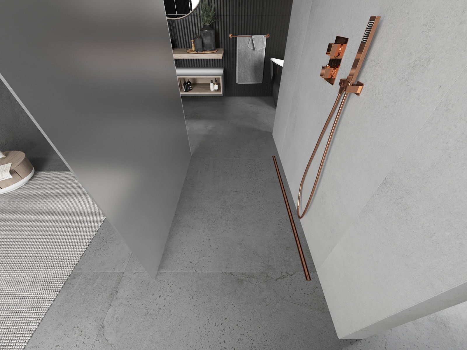 Mexen Kioto свободностояща душ стена 100 x 200 см, матирано 8 мм, розово злато