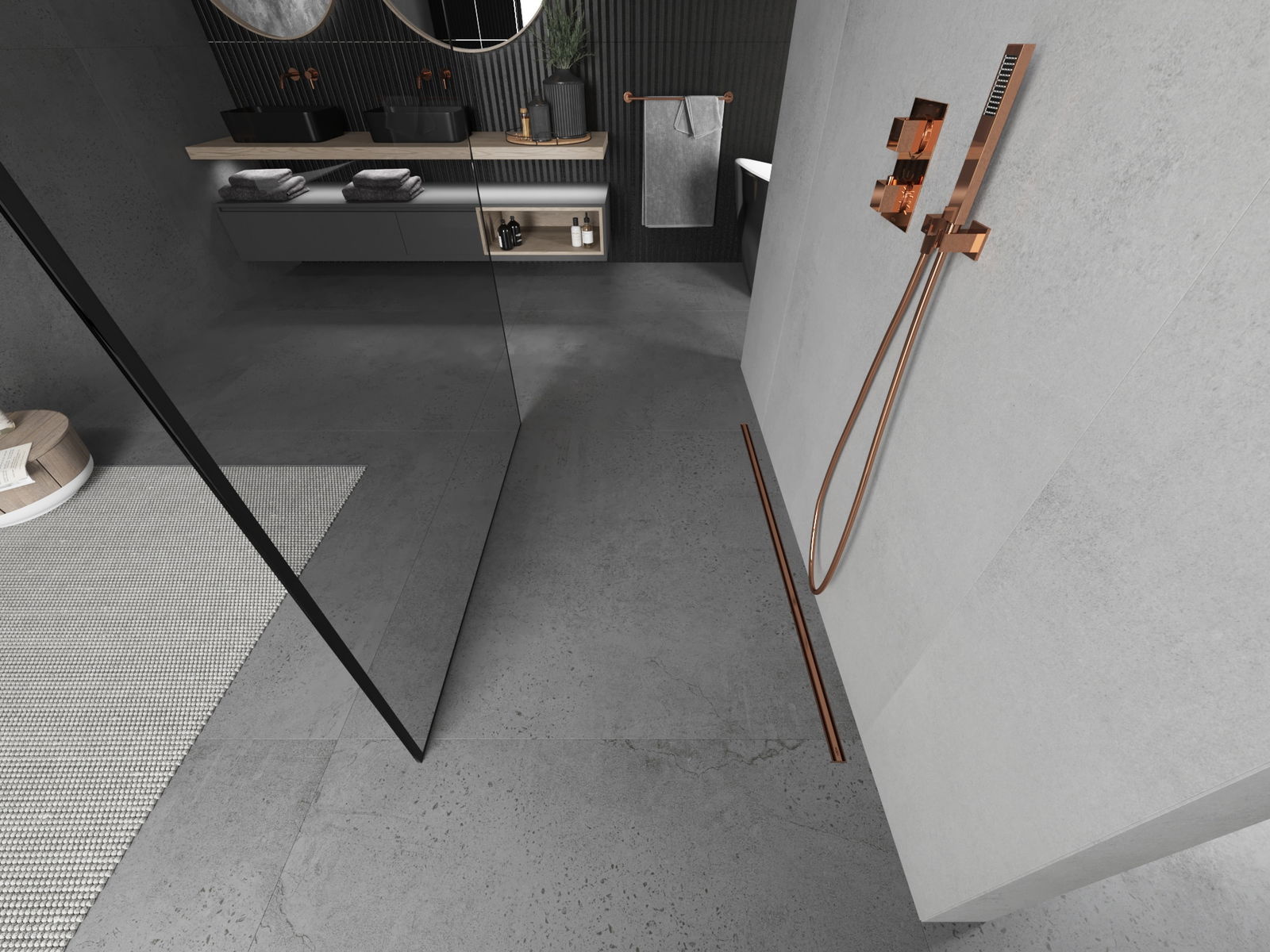 Mexen Kioto свободностояща душ стена 120 x 200 см, черна рамка 8 мм, розово злато - 800-120-002-60-70