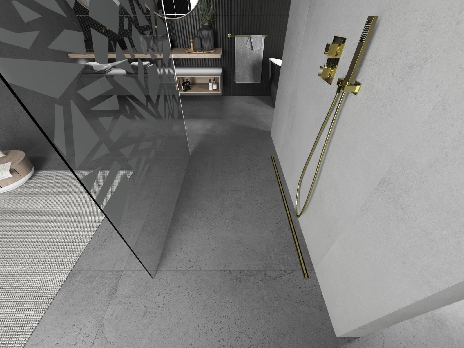 Mexen Kioto свободностоящ параван за душ 130 x 200 см, бял десен 8 мм, златен - 800-130-002-50-85