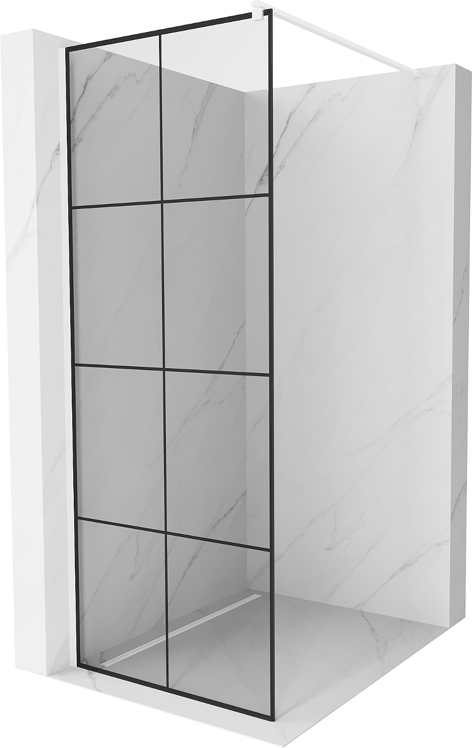Mexen Kioto душ стена Walk-in 90 x 200 см, черна решетка 8 мм, бяла - 800-090-101-20-77