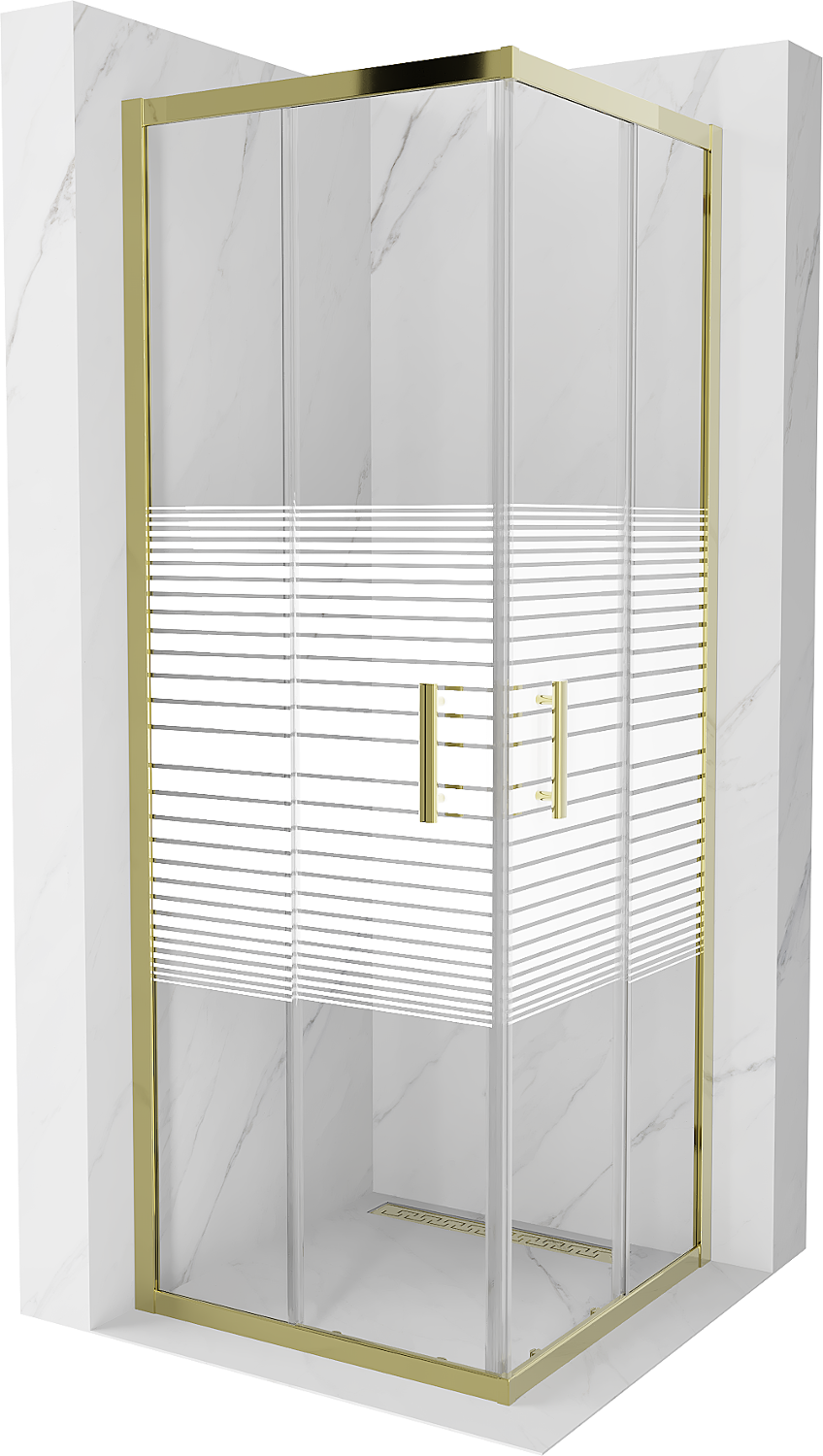 Mexen Rio квадратна душ кабина 70 x 70 см, бели ивици, златна - 860-070-070-50-20