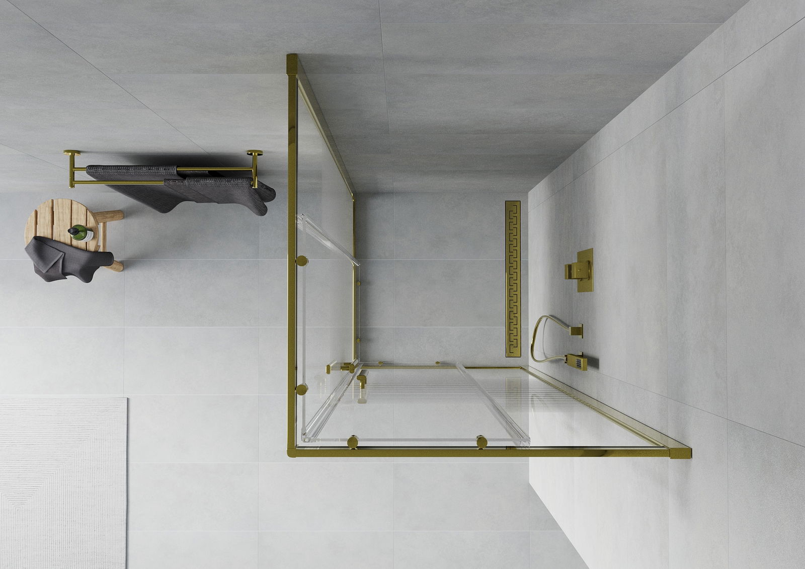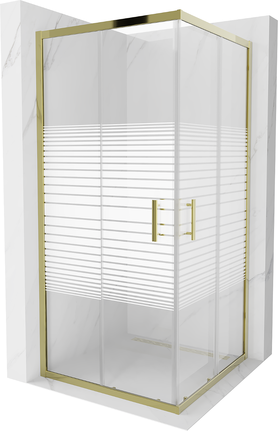 Mexen Rio квадратна душ кабина 90 x 90 см, бели ленти, златна - 860-090-090-50-20