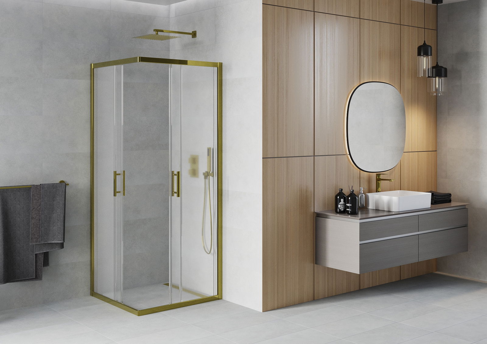 Mexen Rio квадратна душ кабина 80 x 80 см, матирана, златиста - 860-080-080-50-30