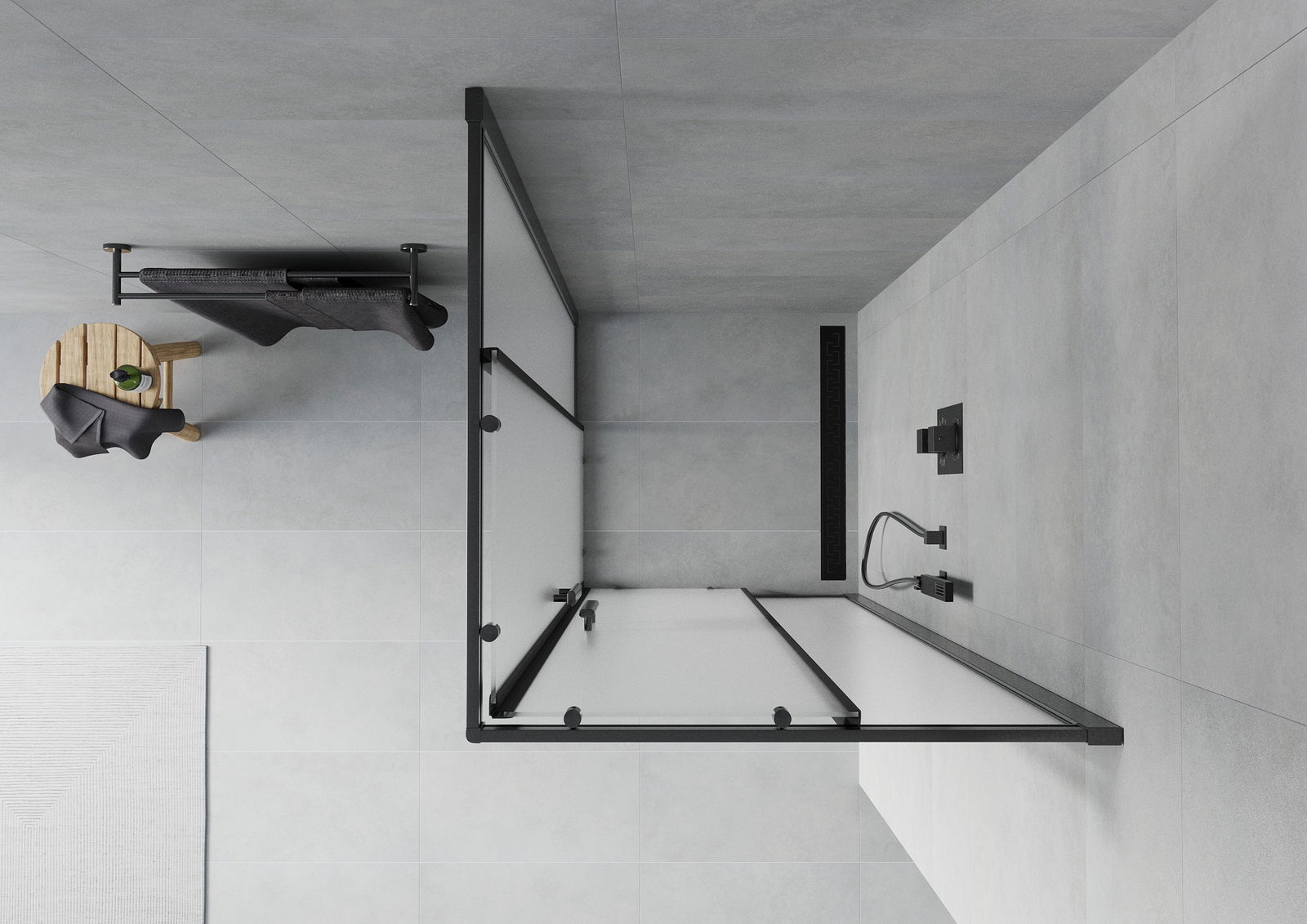 В зависимост от вашите нужди, продуктът може да бъде монтиран както на таблата за душ, така и директно на пода. Универсалният метод за монтаж ви позволява да адаптирате продукта към различни видове бани и да конфигурирате място.