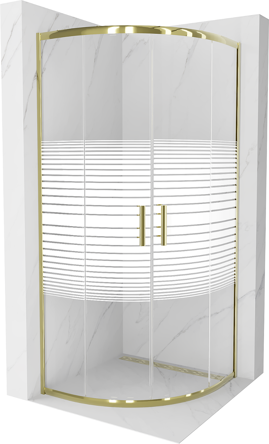 Mexen Rio полукръгла душ кабина 80 x 80 см, бели ленти, златна - 863-080-080-50-20