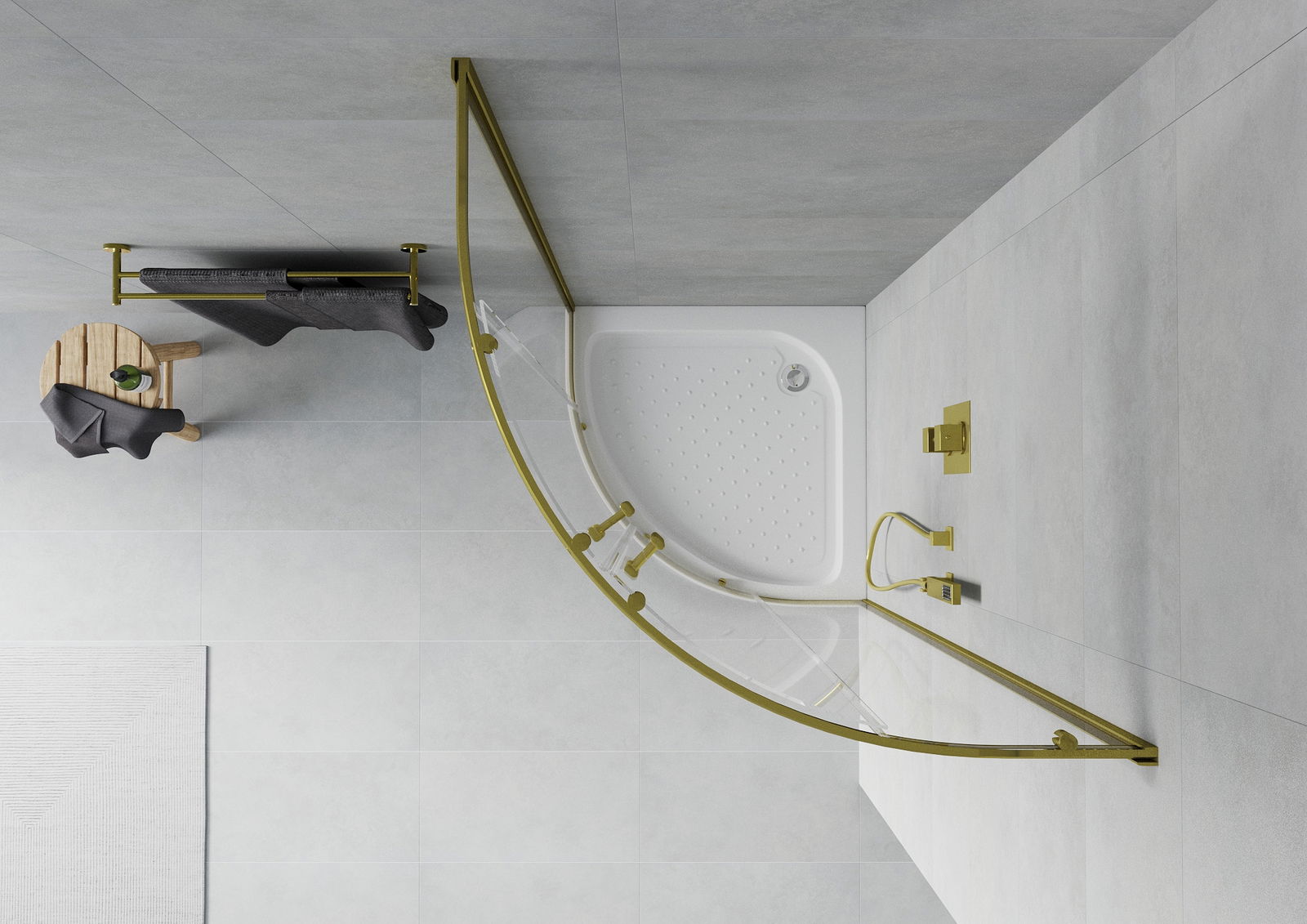 Mexen Rio полукръгла душ кабина 70 х 70 см, прозрачна, златиста + поддушов съд Rio, бял - 863-070-070-50-00-4710