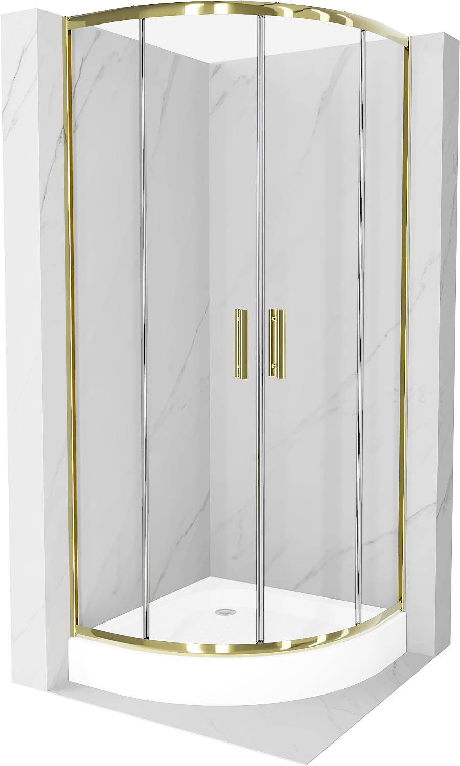 Mexen Rio полукръгла душ кабина 80 x 80 см, прозрачна, златиста + корито Rio, бяло - 863-080-080-50-00-4710