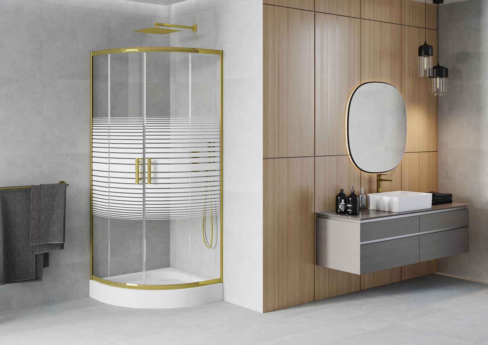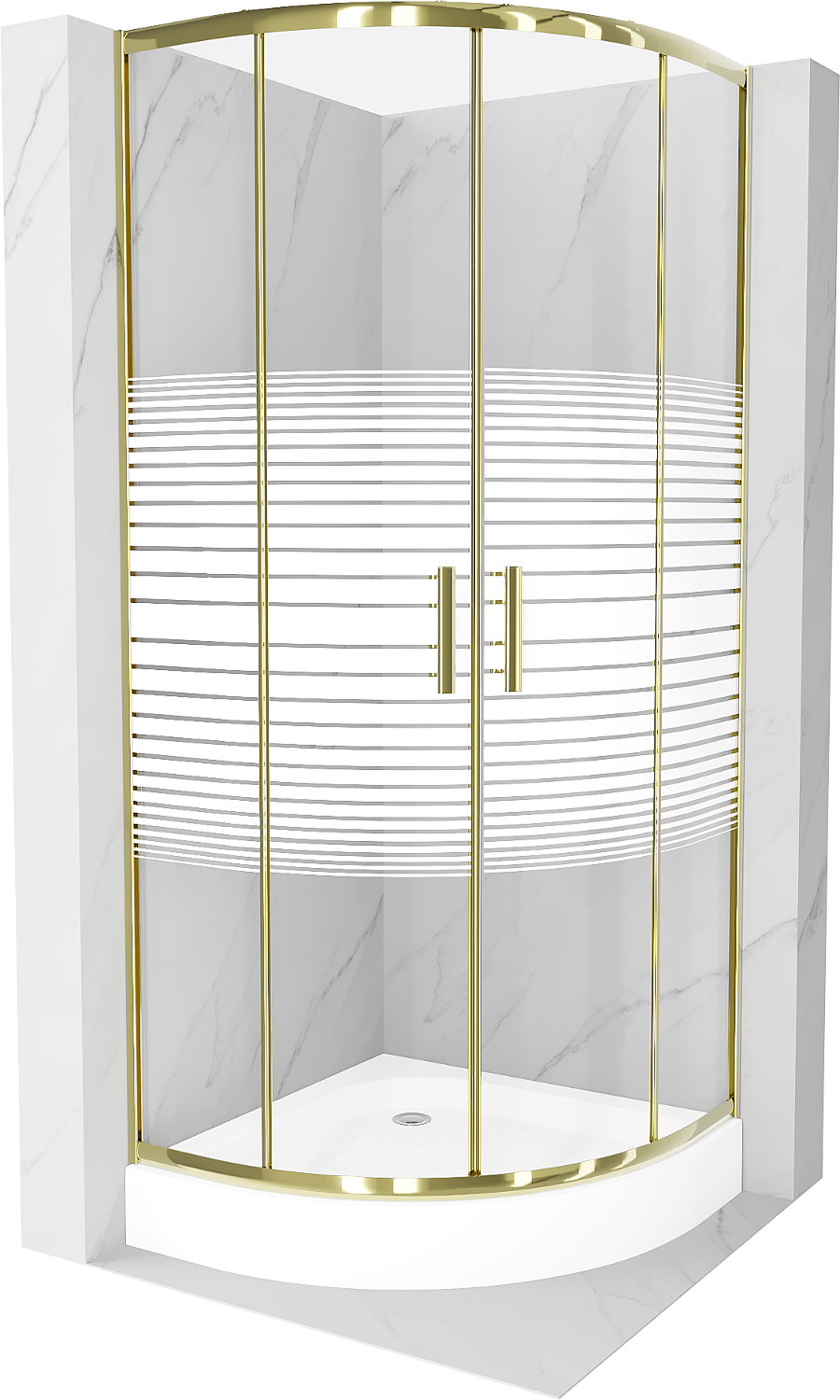 Mexen Rio полукръгла душ кабина 70 x 70 см, бели ивици, златна + поддушово корито, бяло - 863-070-070-50-20-4710