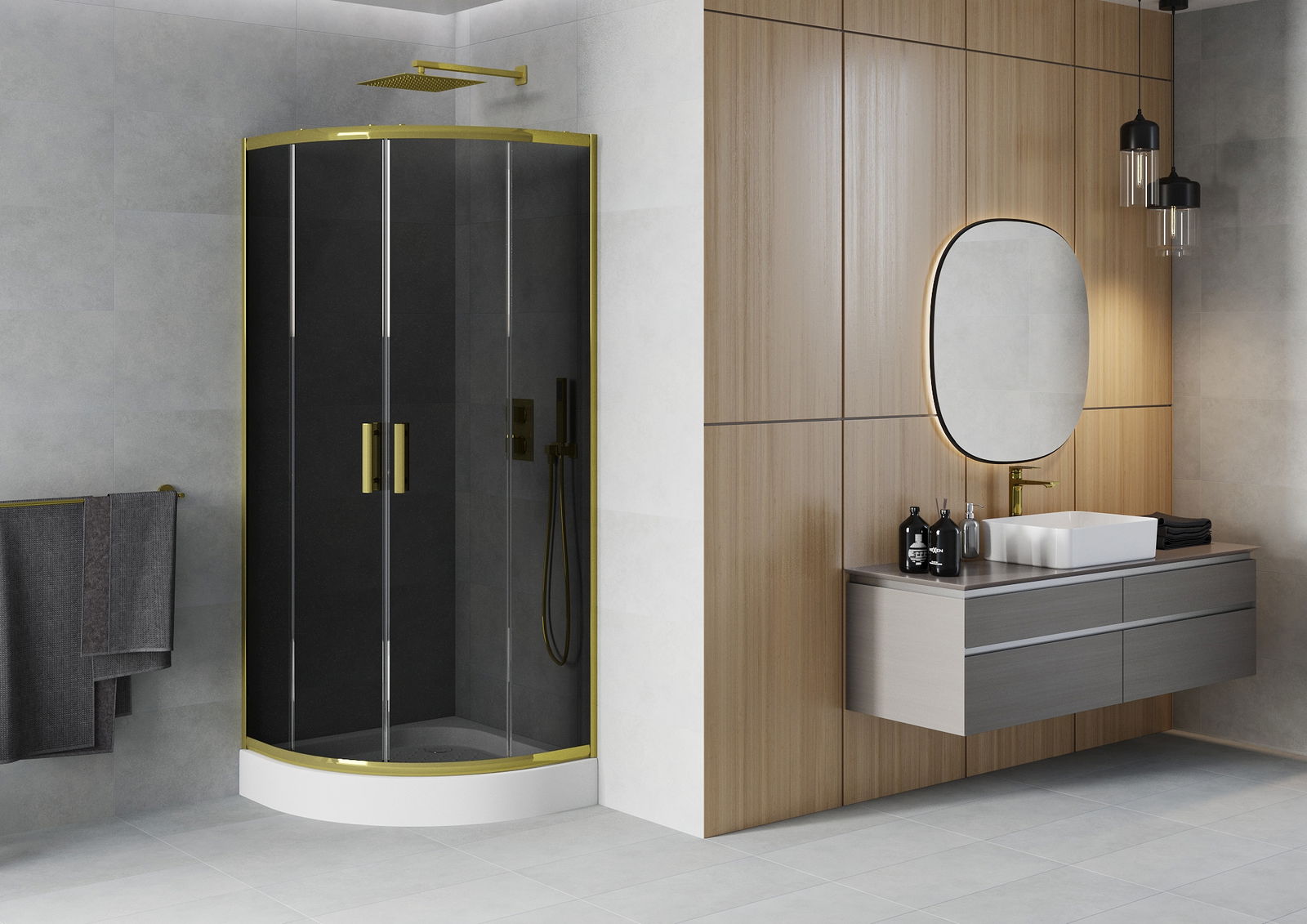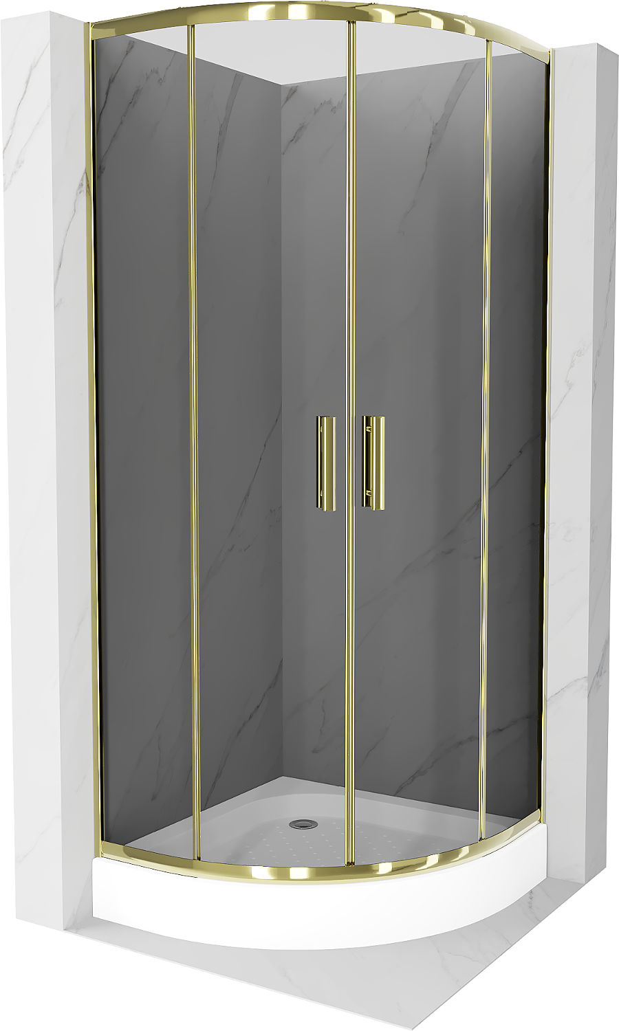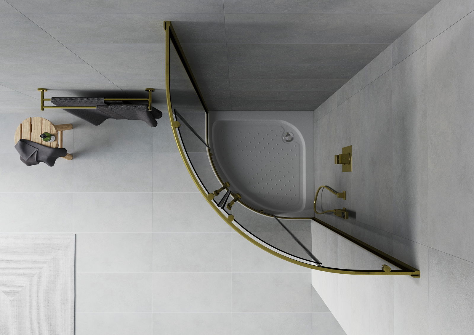 Mexen Rio полукръгла душ кабина 90 x 90 cm, графит, злато + корито Rio, бяло - 863-090-090-50-0-4710