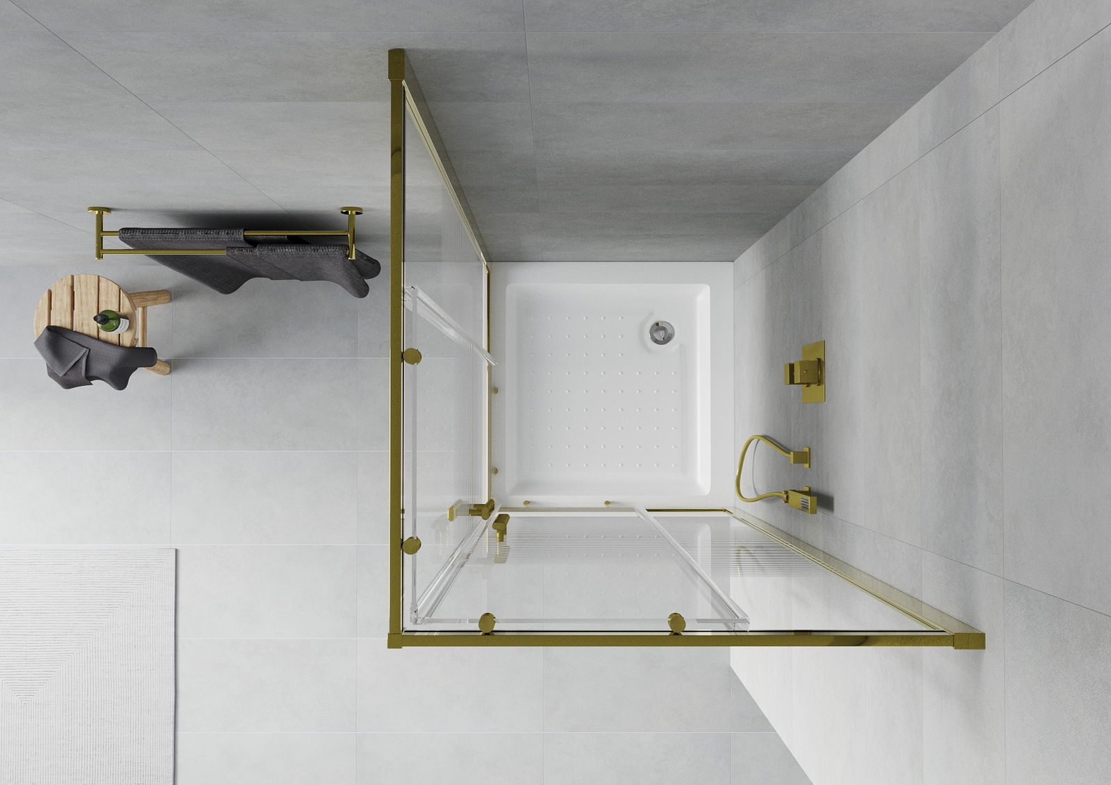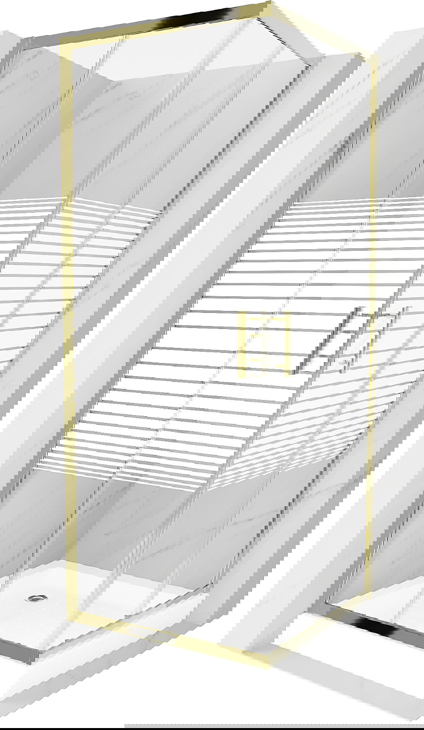 Mexen Rio Квадратна душ кабина 70 x 70 см, бели ленти, злато + душ корито, бяло - 860-070-070-50-20-4510