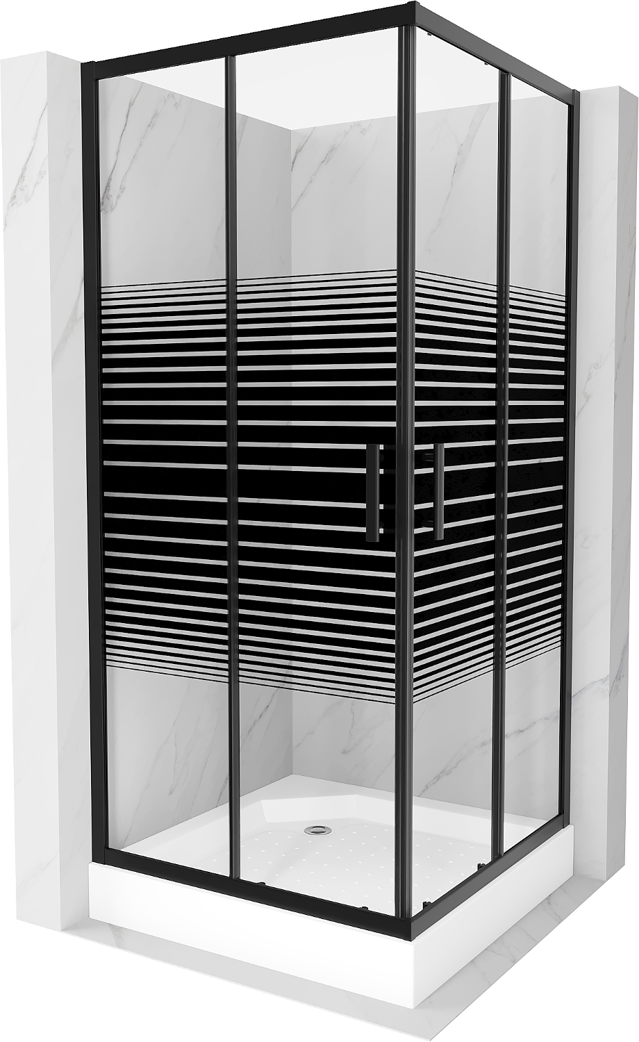 Mexen Rio квадратна душ кабина 90 x 90 см, черни линии, черна + корито Rio, бял - 860-090-090-70-20-4510