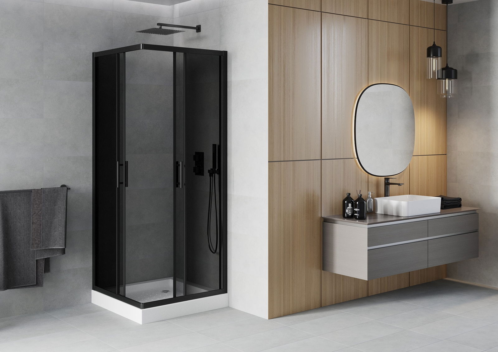 Mexen Rio квадратна душ кабина 90 x 90 см, прозрачна, черна - 860-090-090-70-00