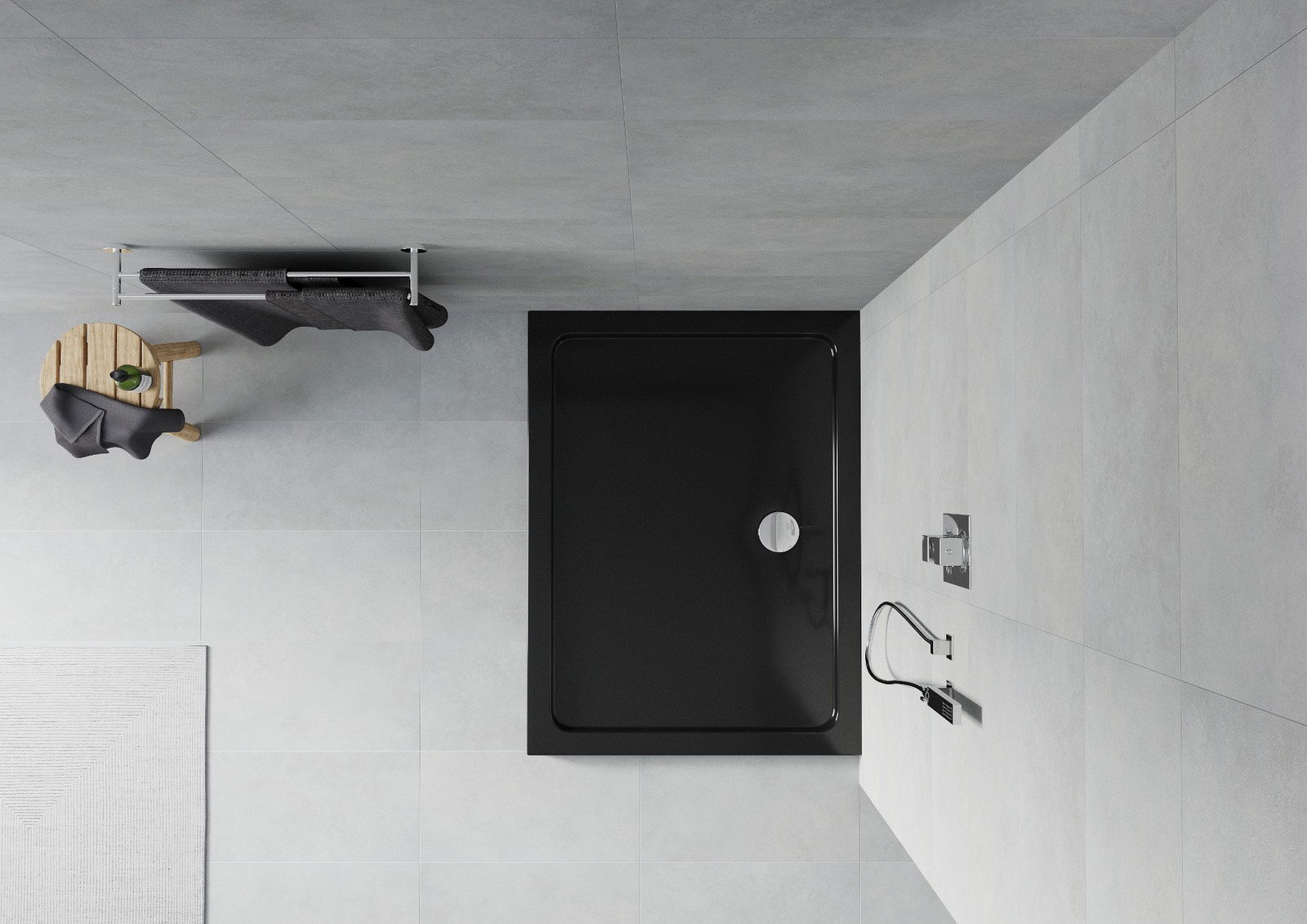 Mexen Flat правоъгълен плитък поддушов корит 90 x 70 см, черен, сифон хром - 40707090