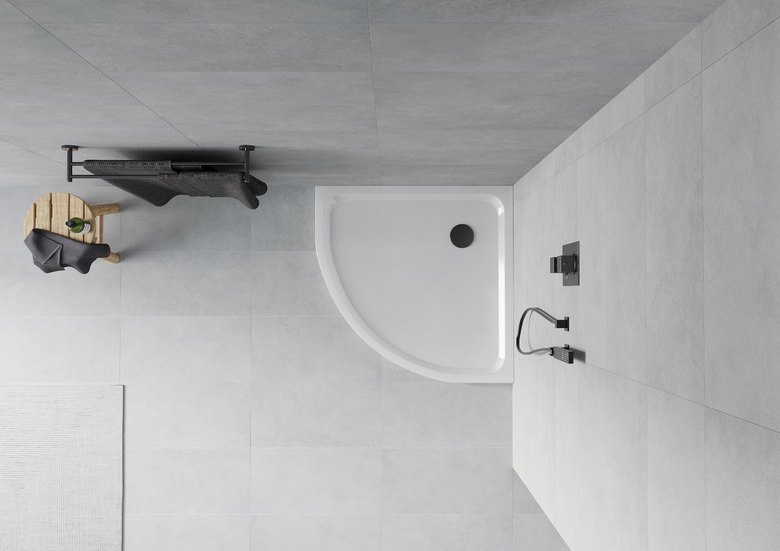 Mexen Flat полукръгъл тънък душ корито с размери 100 x 100 см е идеалното решение за модерни бани. Изработено от висококачествен санитарен акрил, осигурява издръжливост и естетика. Благодарение на дълбочината от само 5 см, се вписва идеално в пространството. Коритото има елегантен бял цвят с блясък и включва черен сифон, което му придава модерен характер. Диаметърът на оттичането от 90 мм осигурява ефективно изтичане на вода, а подсилената основа гарантира стабилност и комфорт при ползване.