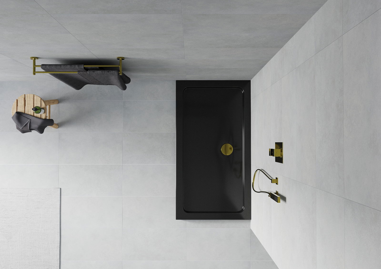 Mexen Flat правоъгълно тънко корито 130 x 70 см, черно, сифон златен - 40707013G