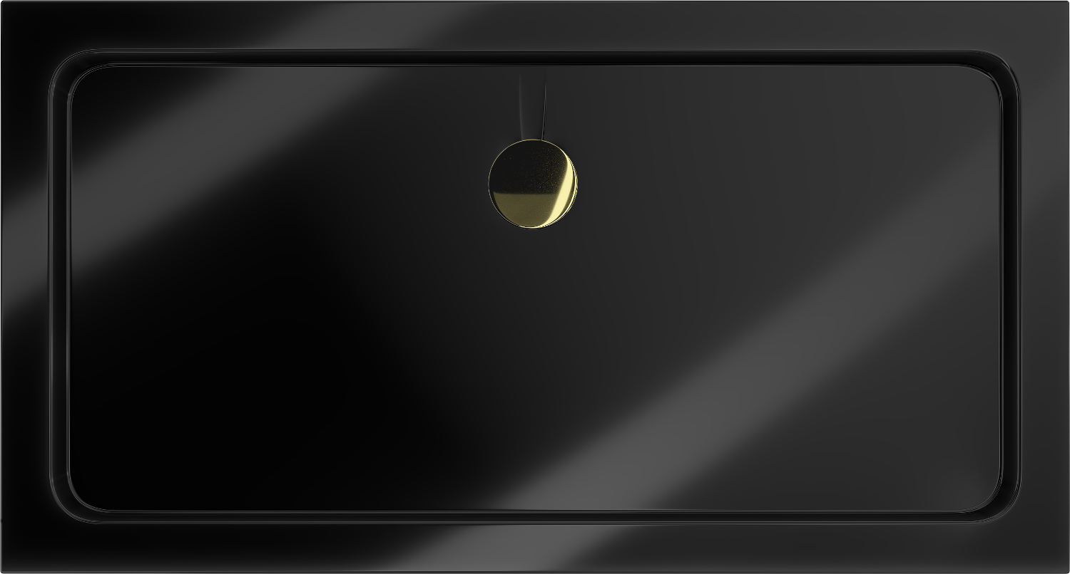 Mexen Flat правоъгълно тънко корито 140 x 70 см, черно, сифон златен - 40707014G
