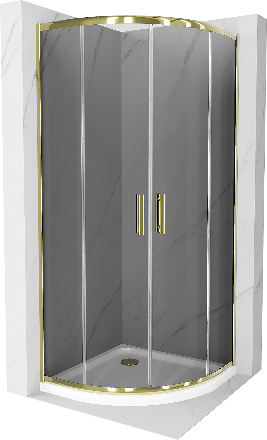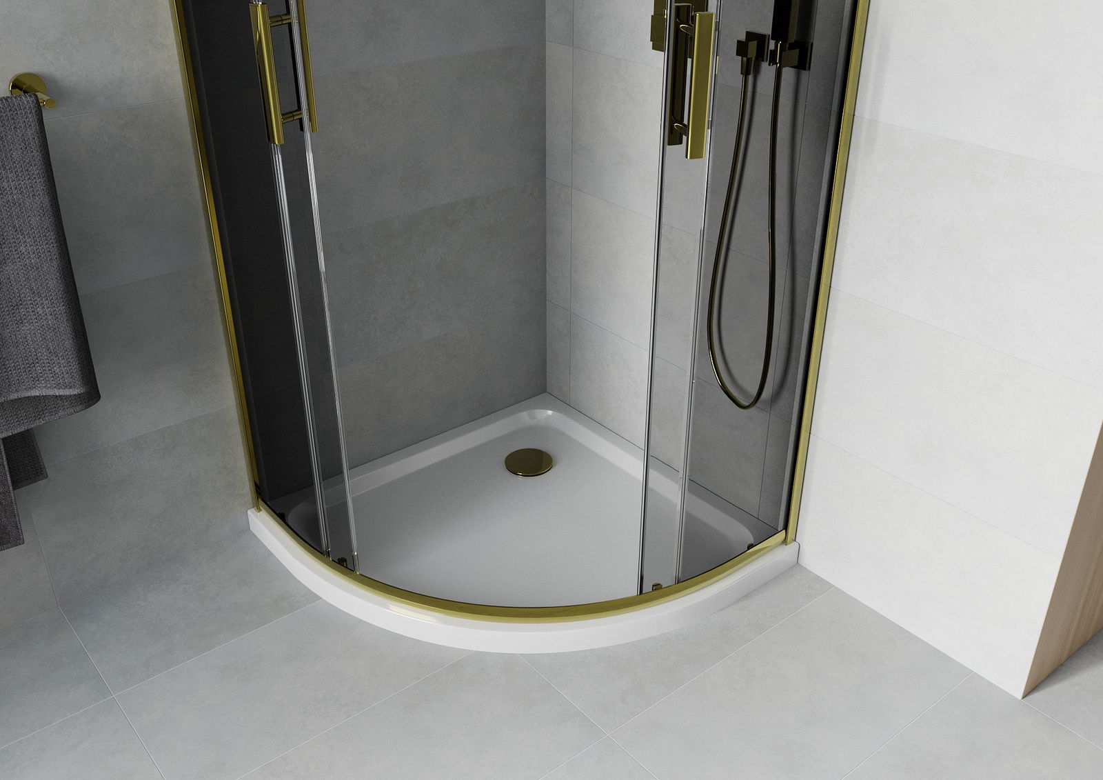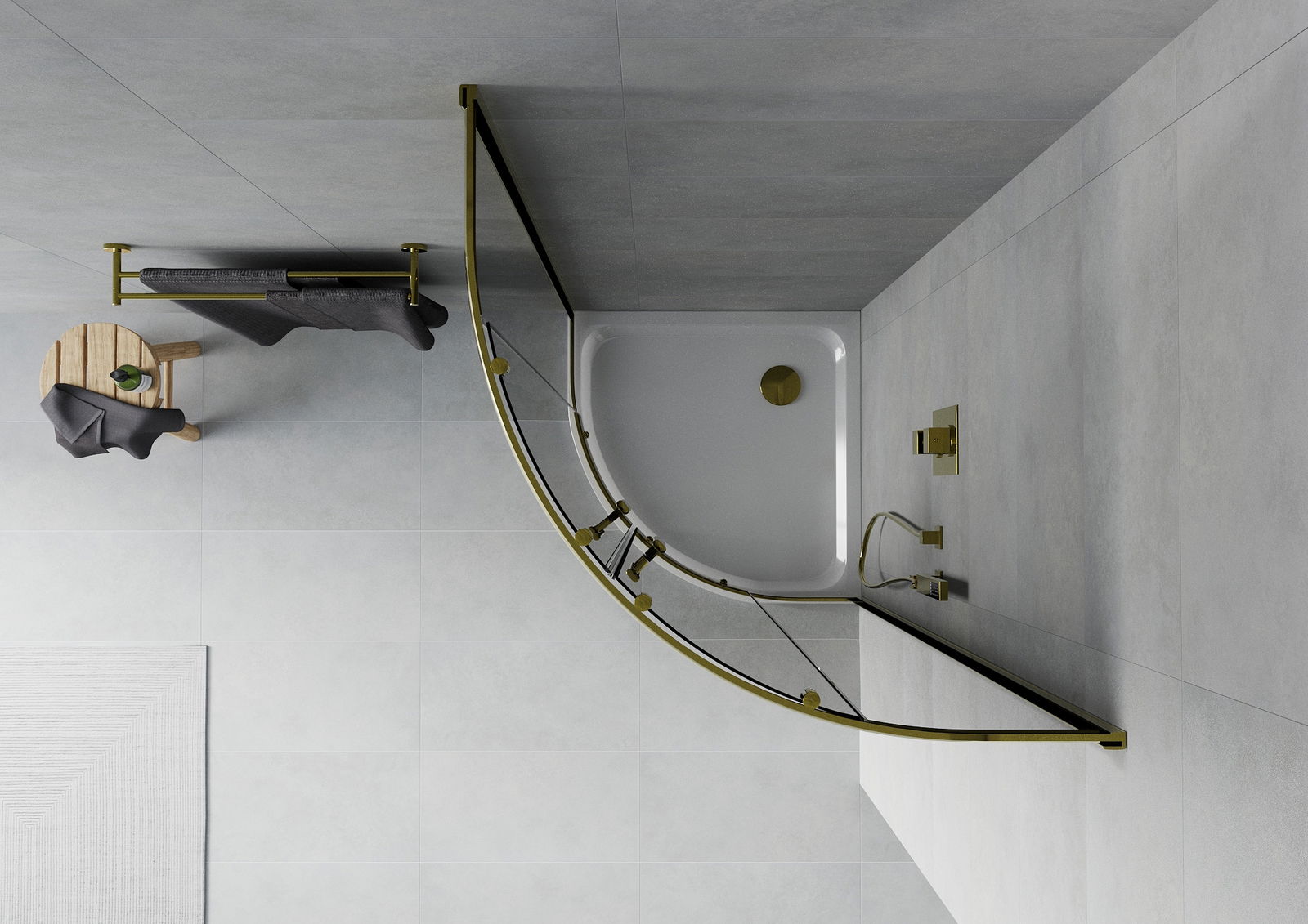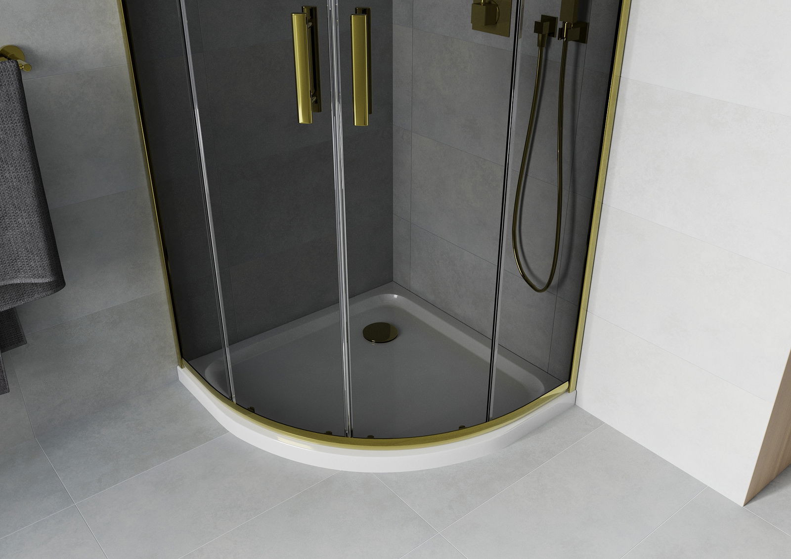 Mexen Rio полукръгла душ кабина 90 x 90 см, графит, злато + плосък поддушник, бял - 863-090-090-50-40-4110G