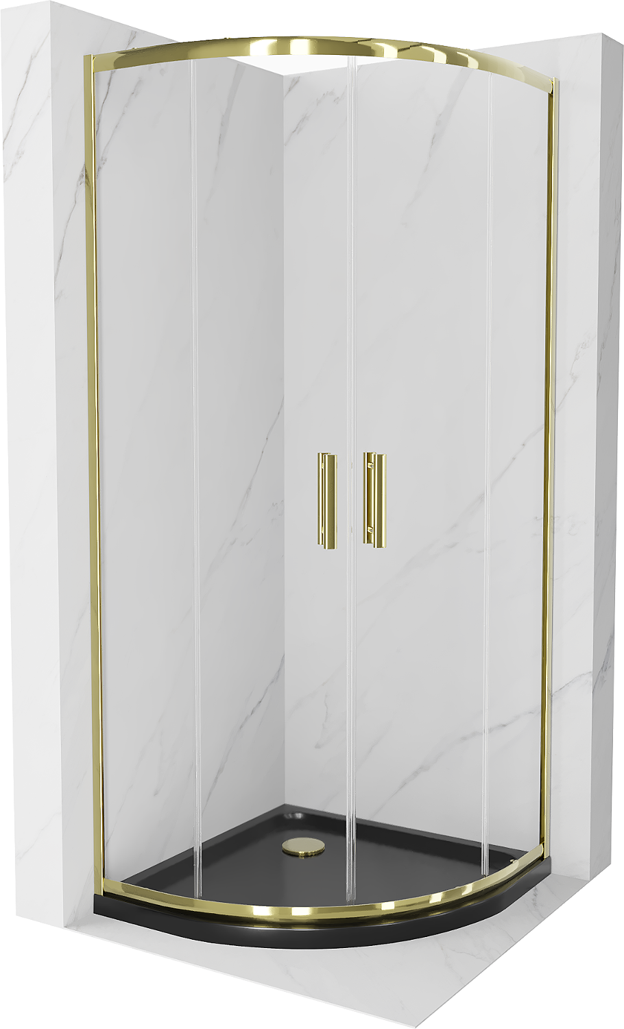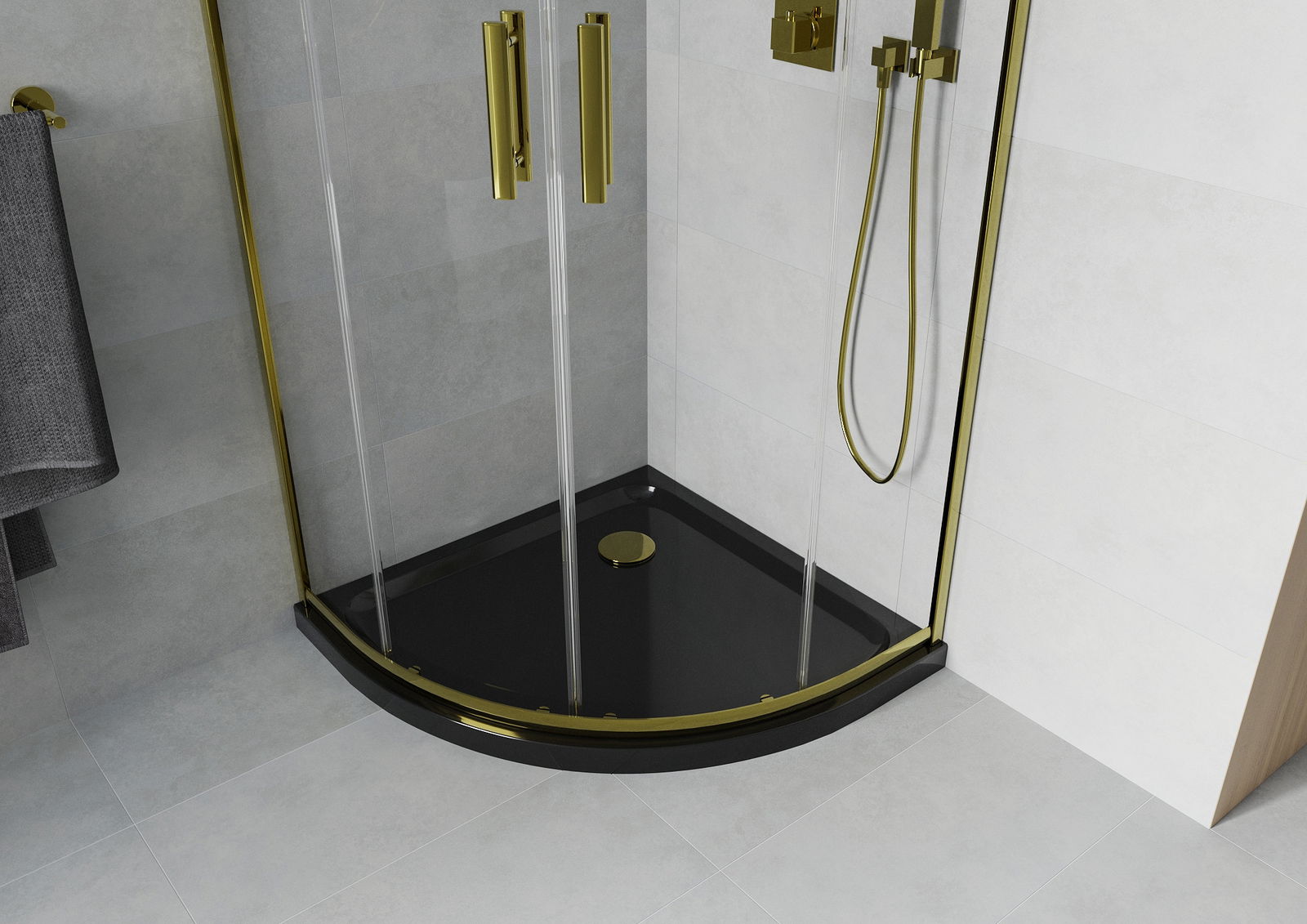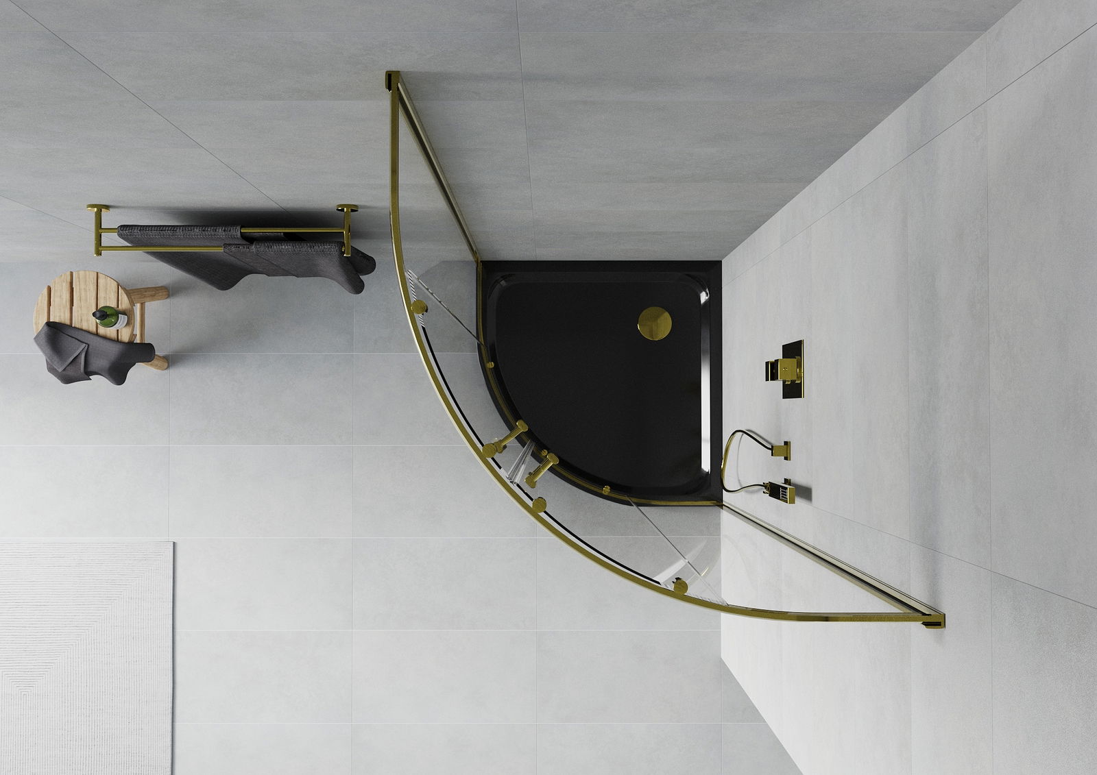 Mexen Rio овална душ кабина 80 x 80 см, прозрачна, златна + плосък поддушов черен - 863-080-080-50-00-4170G